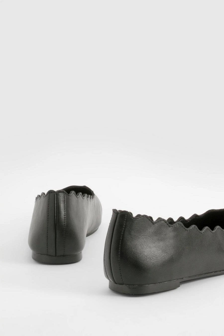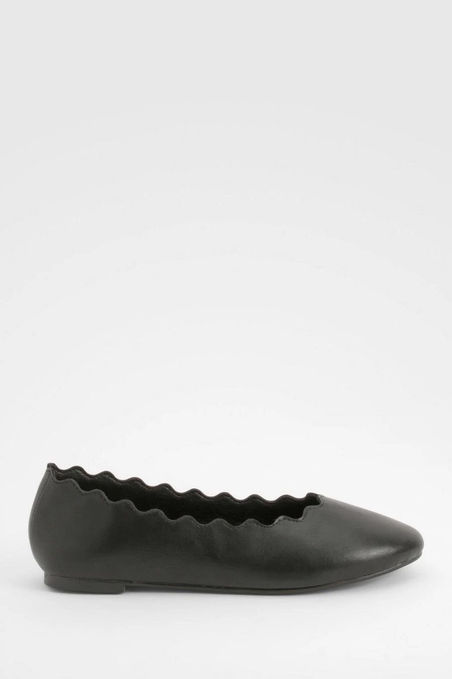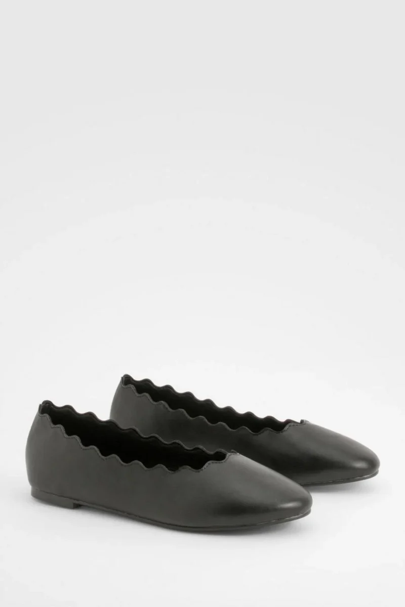 BOOHOO Wide Fit Scallop Edge Ballet Flats