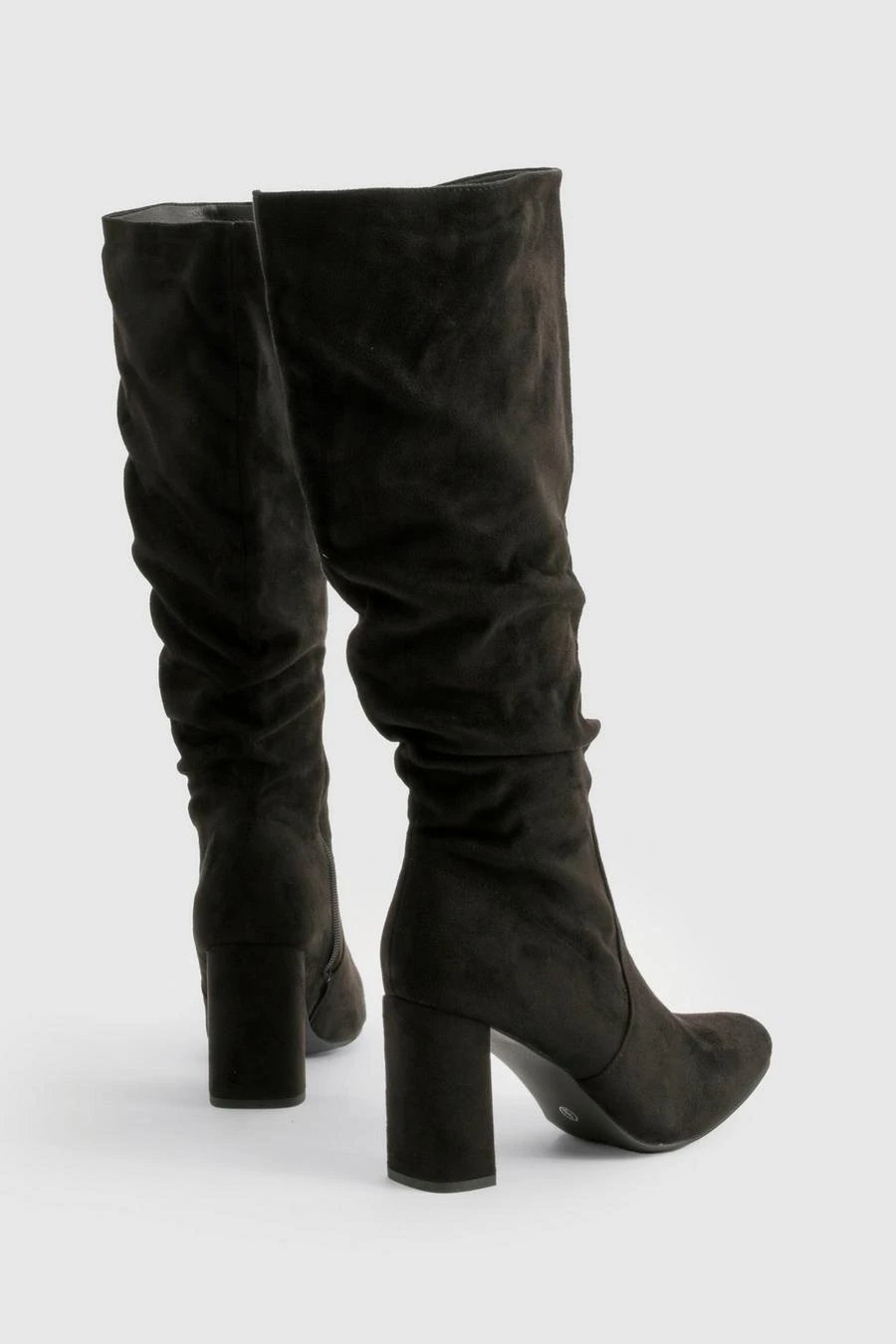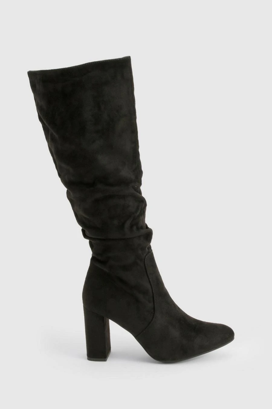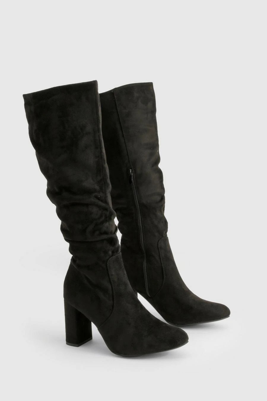 BOOHOO Wide Fit Slouchy Block Heel Knee High Boots