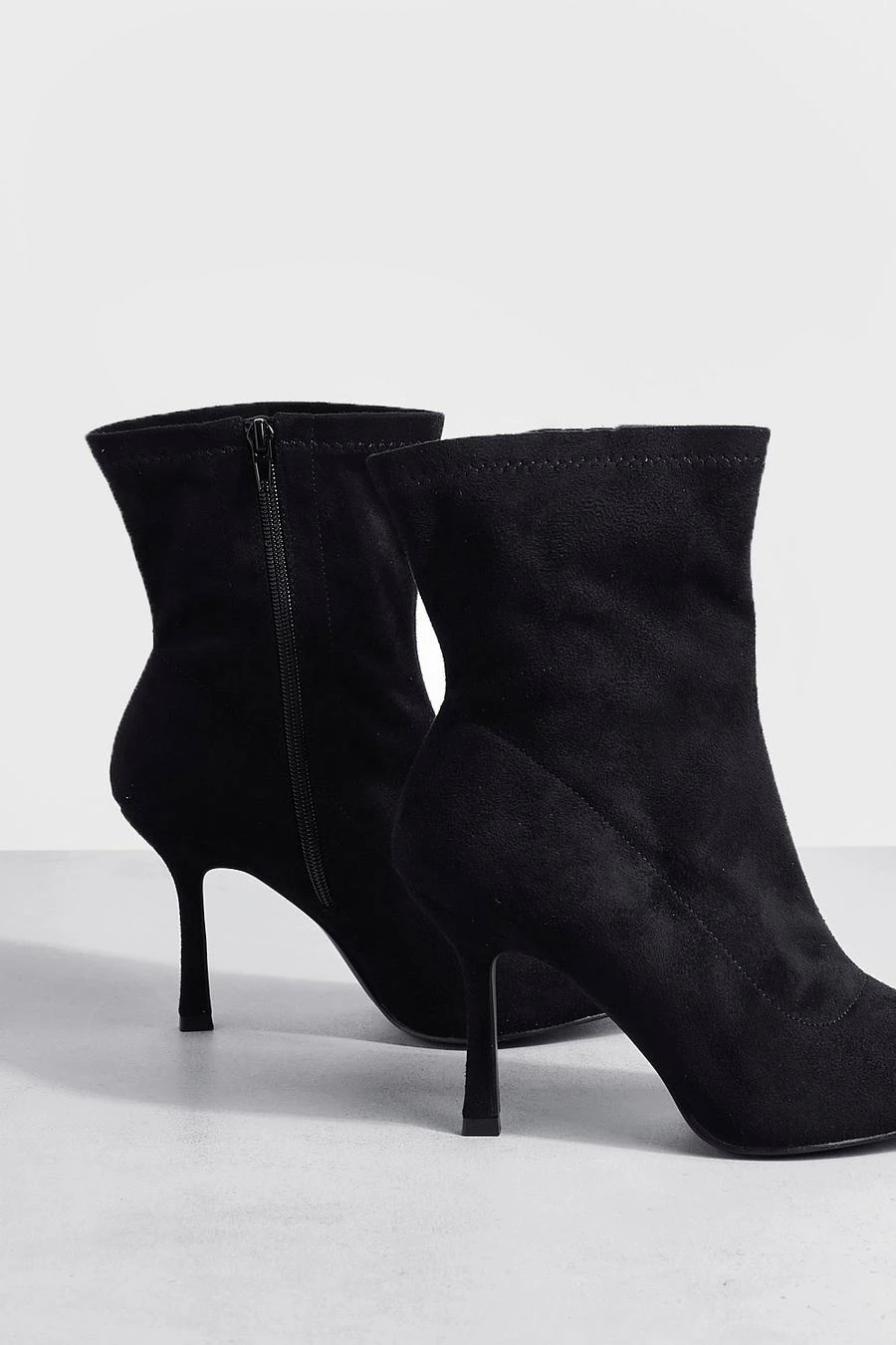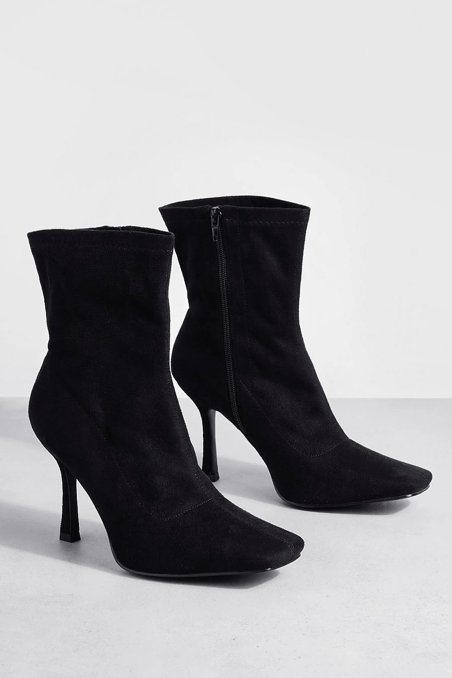 BOOHOO Wide Fit Square Toe Faux Suede Sock Boots