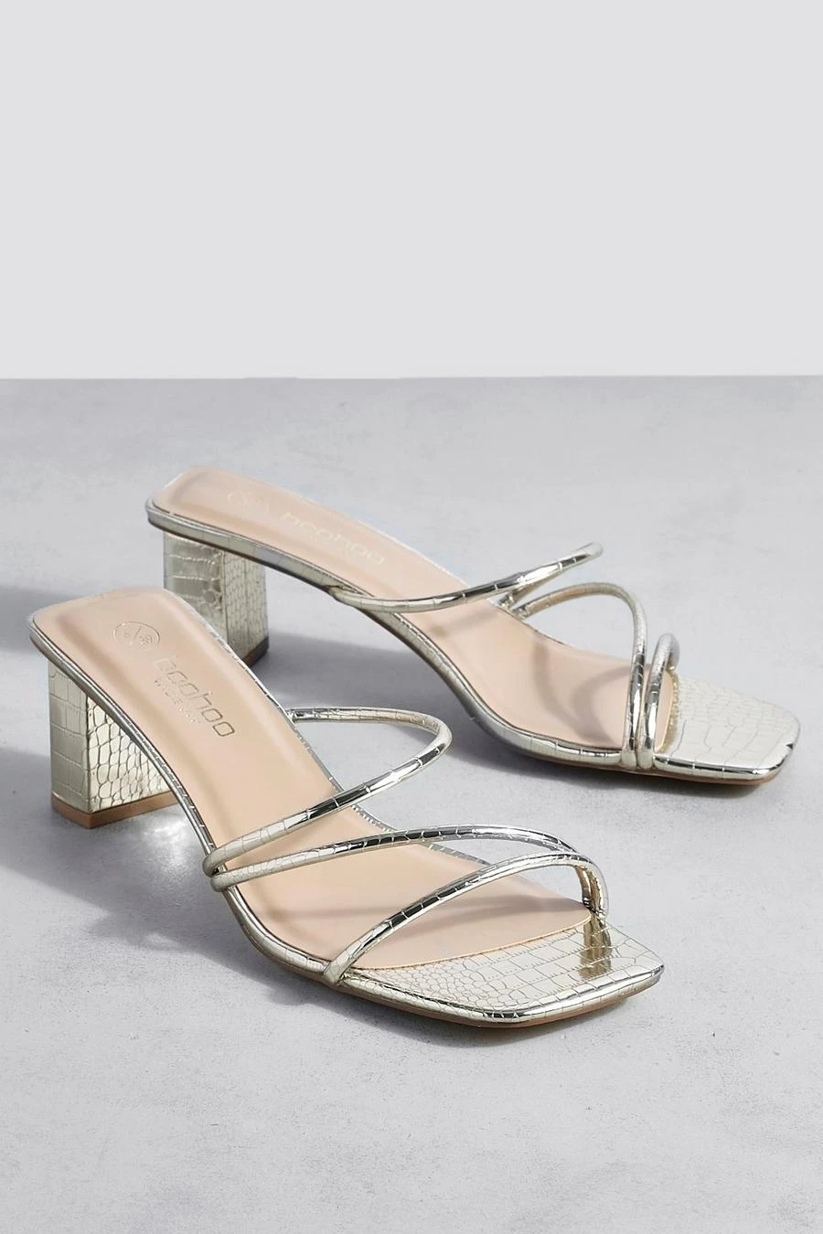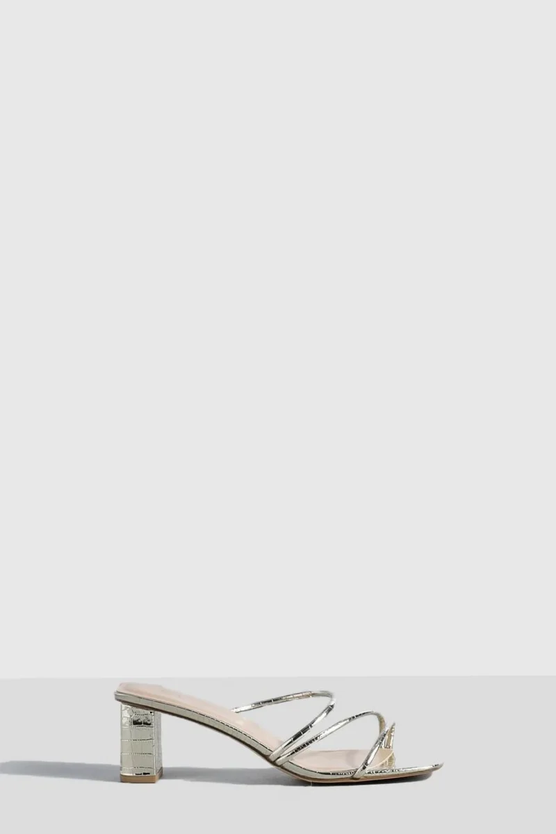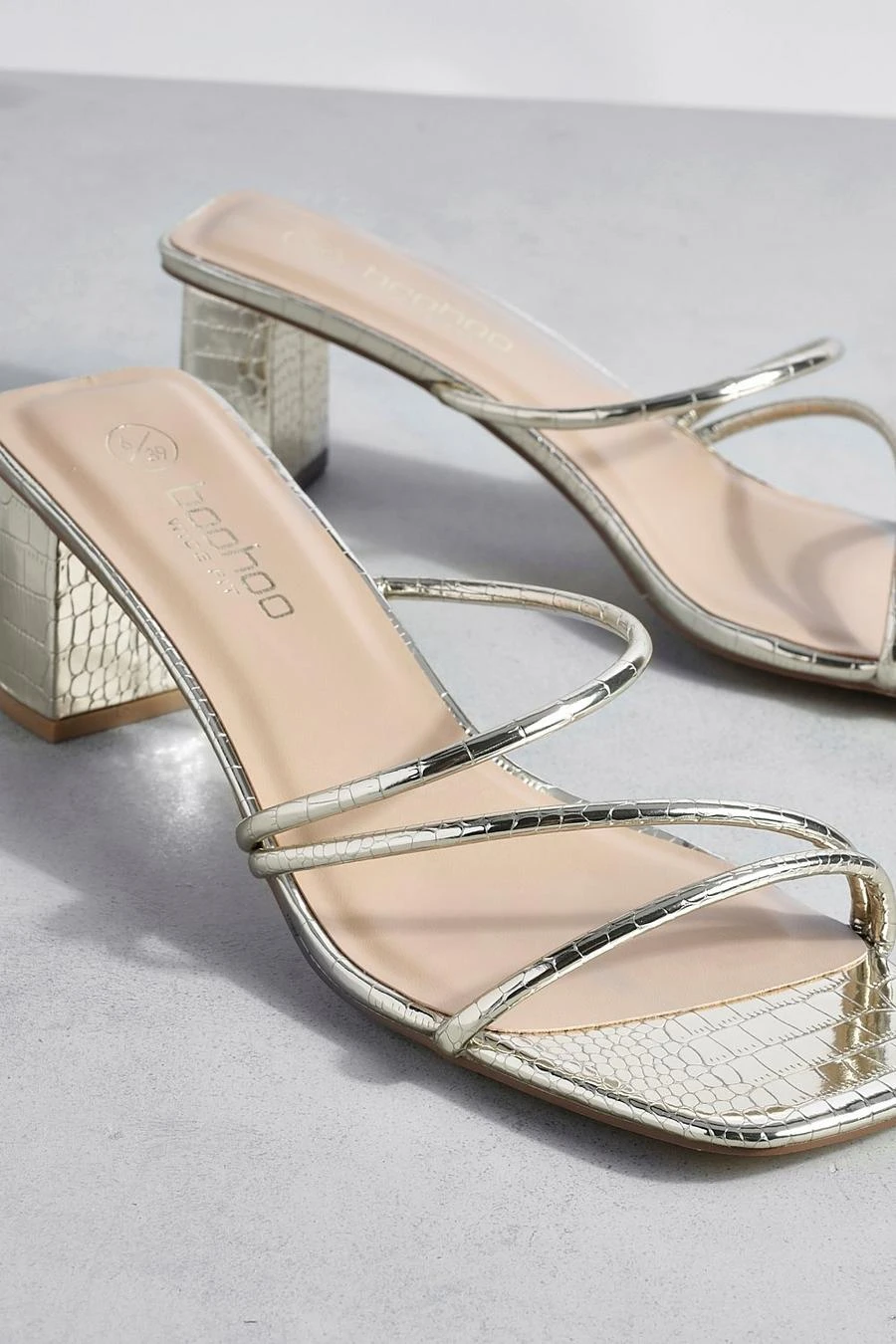 BOOHOO Wide Fit Strappy Low Block Heel Mule