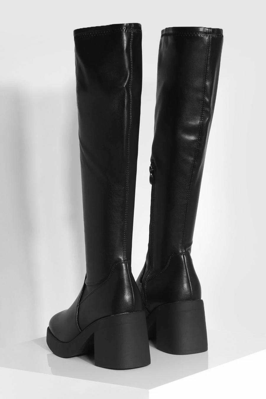 BOOHOO Wide Fit Stretch Block Heel Calf High Boots