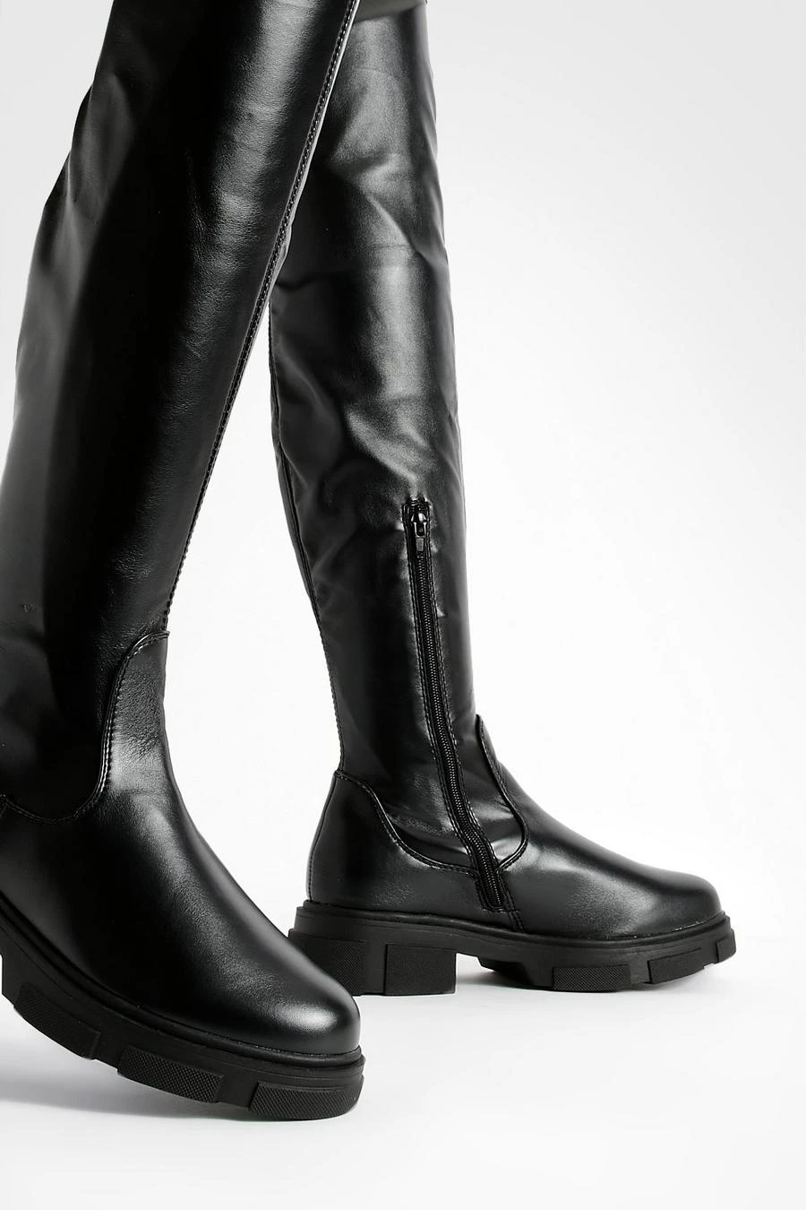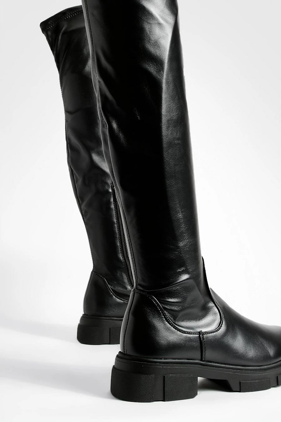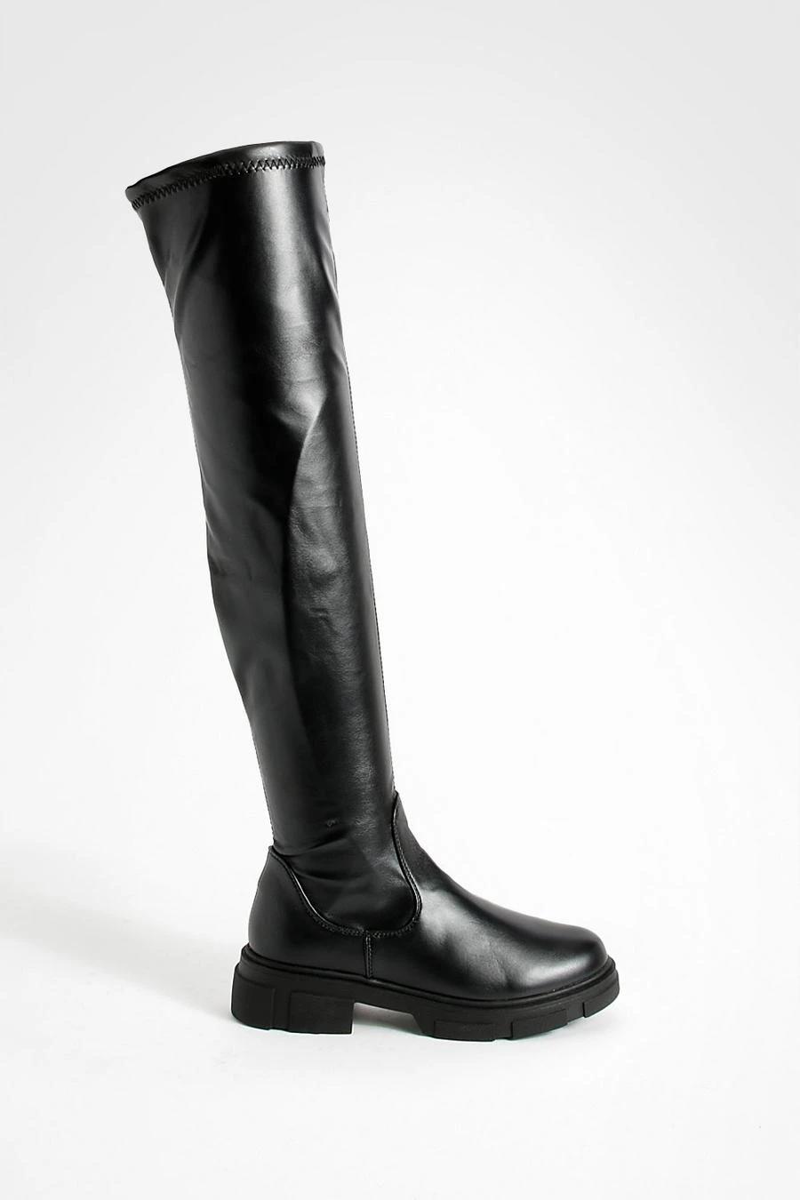 BOOHOO Wide Fit Stretch Pu Knee High Boots