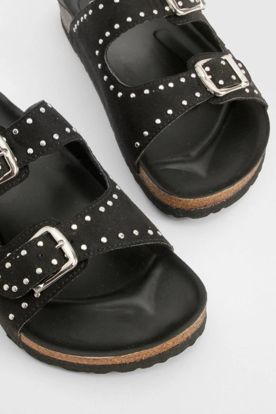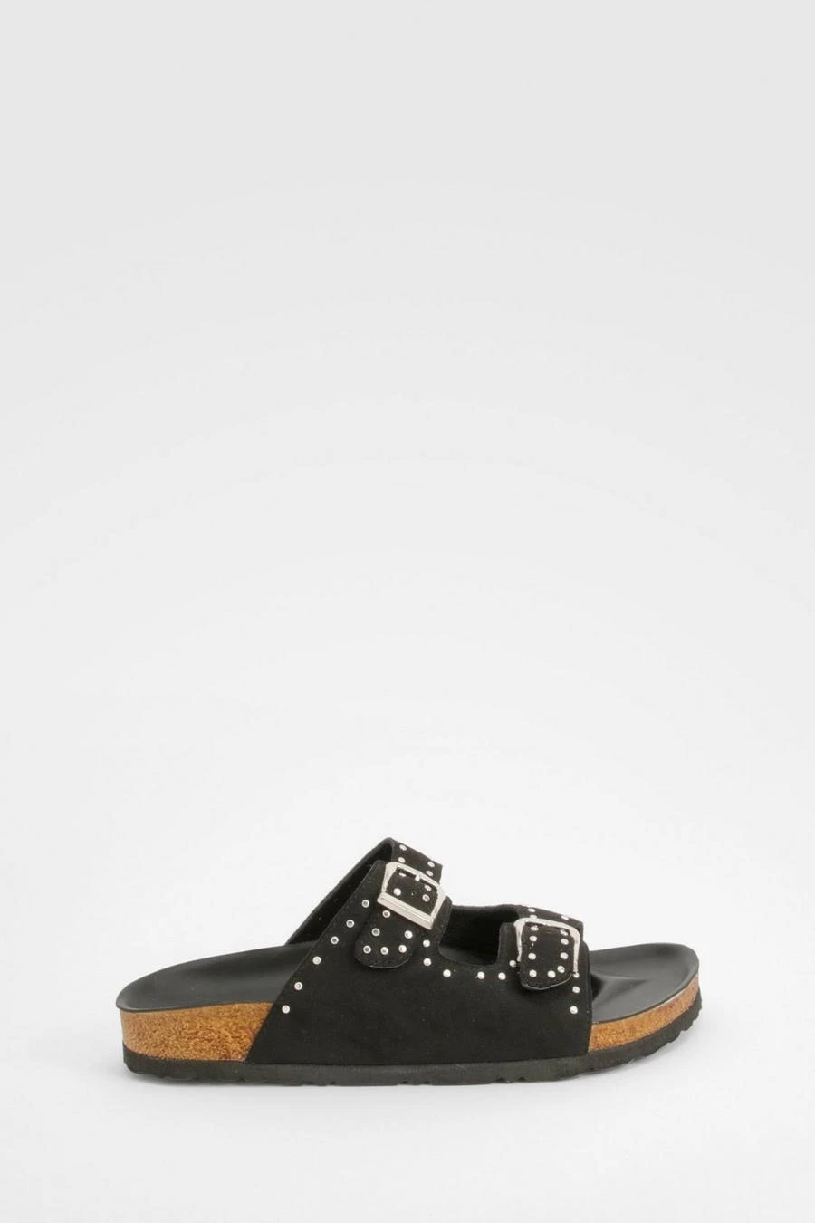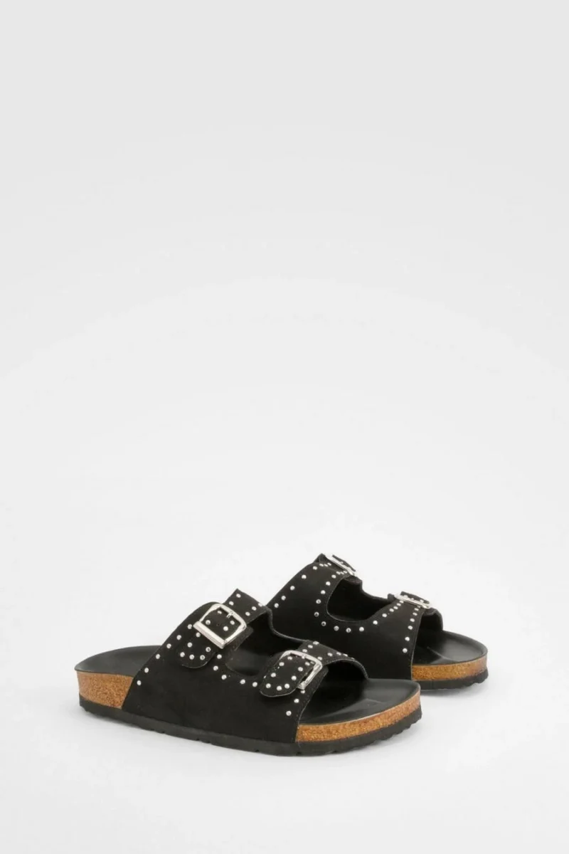 BOOHOO Wide Fit Studded Double Buckle Footbed Sliders