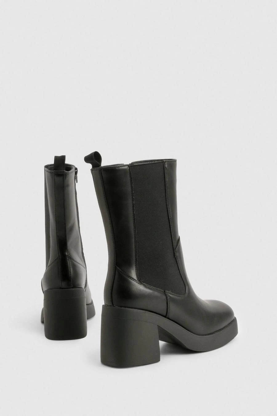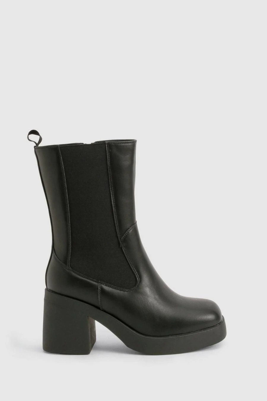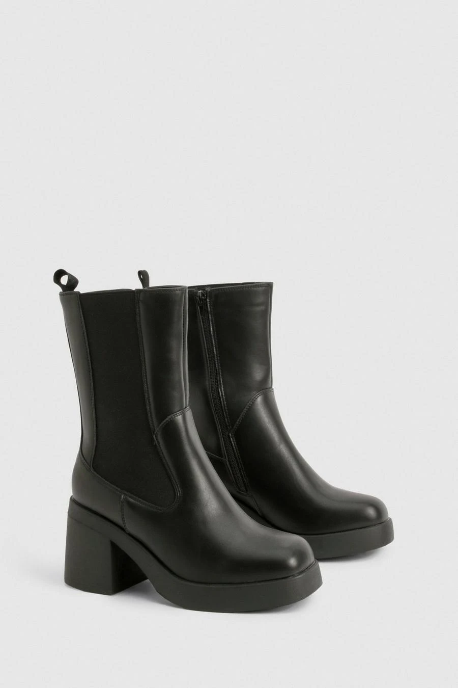 BOOHOO Wide Fit Tab Detail Chunky Calf High Boots