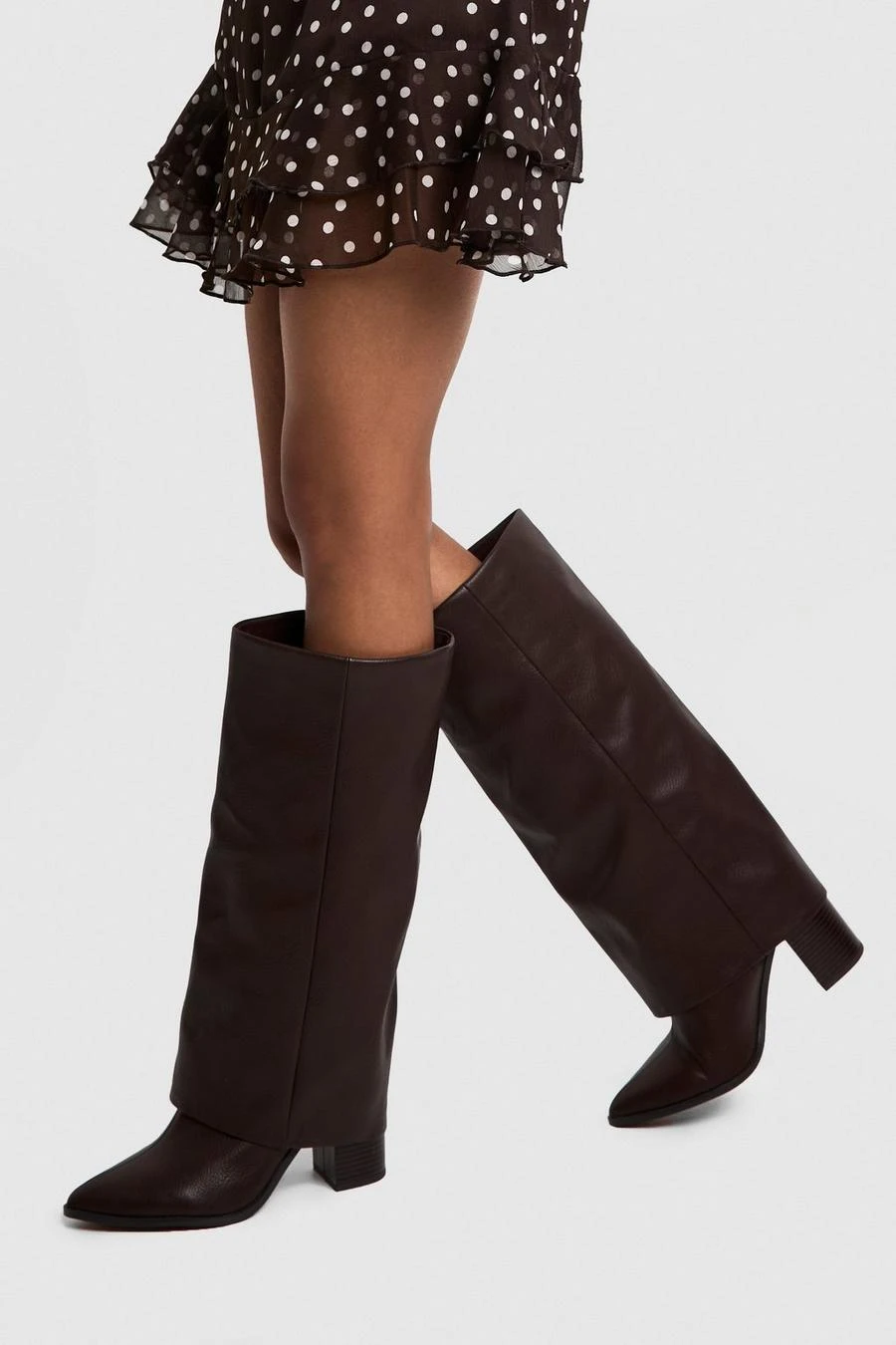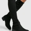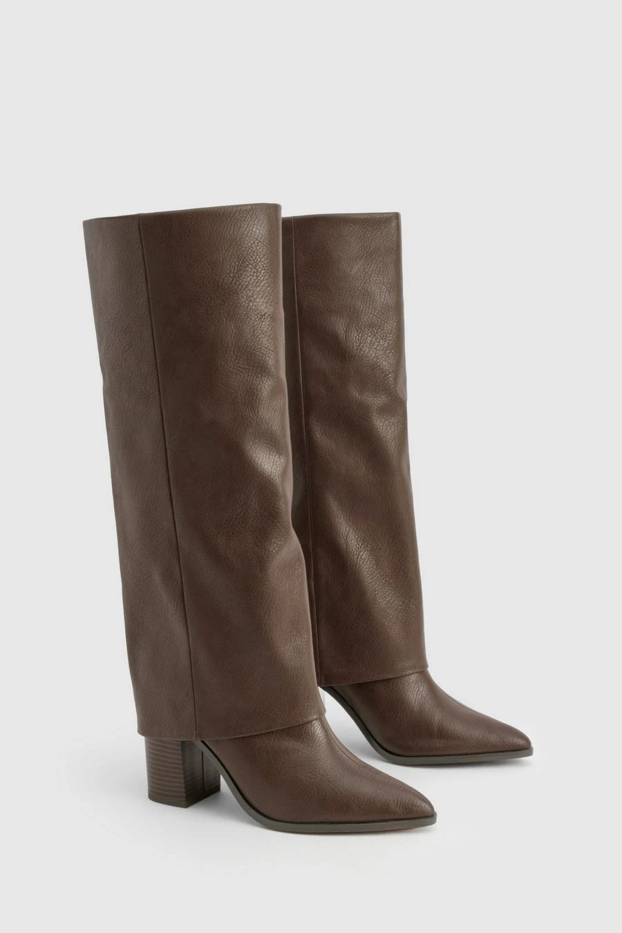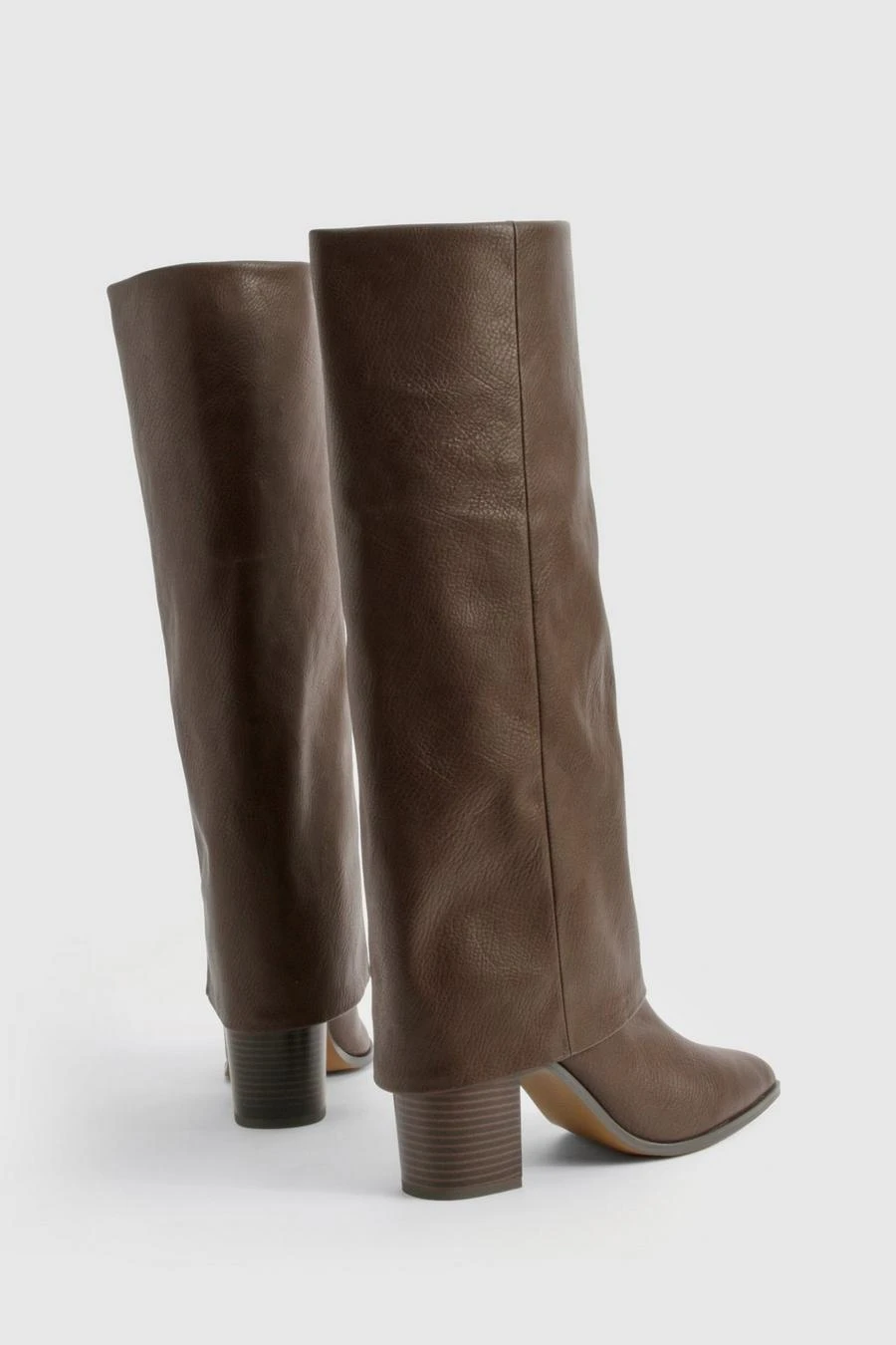 BOOHOO Wide Fit Textured Foldover Stacked Heel Knee High Boots