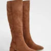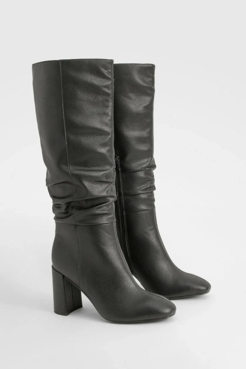 BOOHOO Wide Fit Textured Ruched Heeled Knee High Boots
