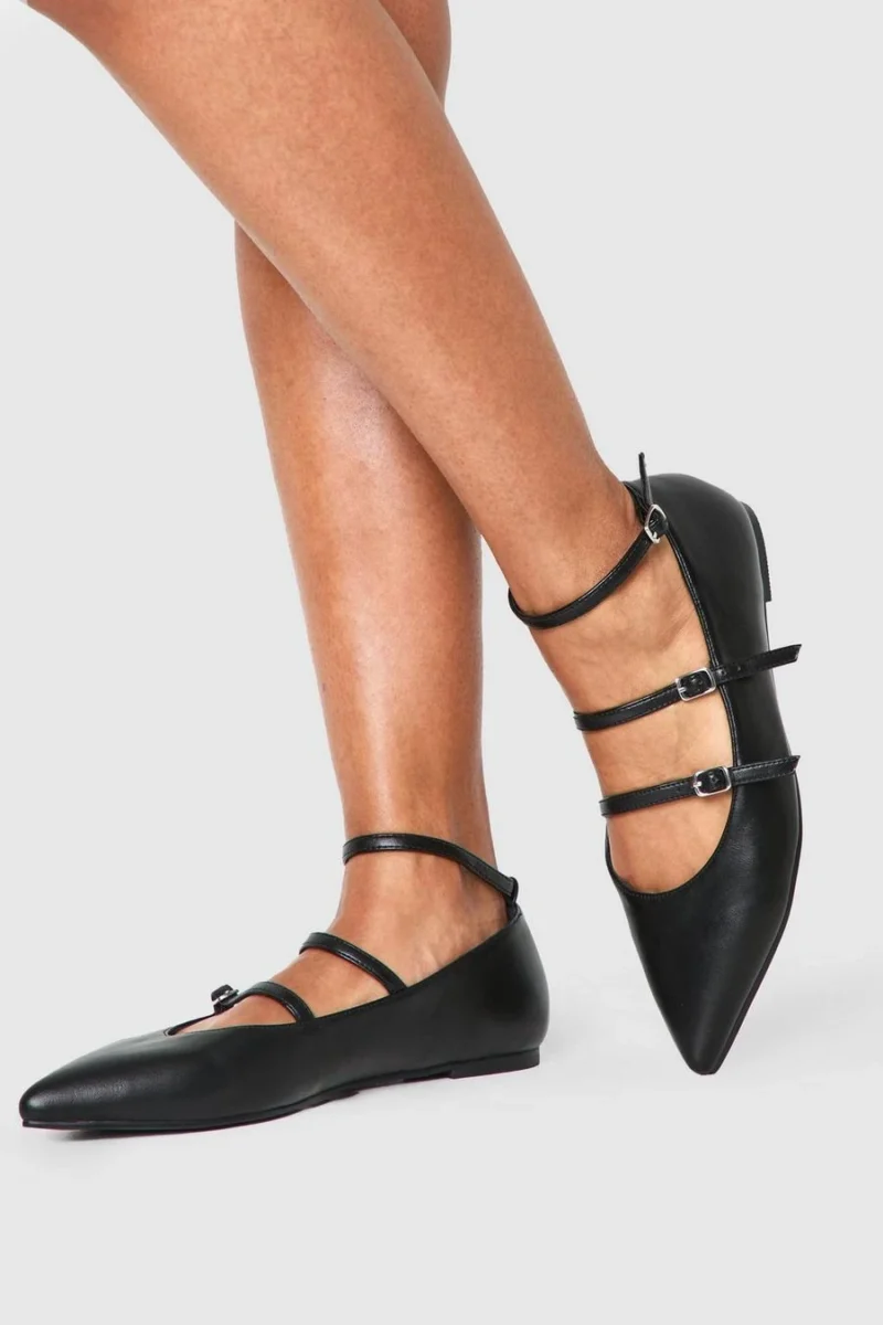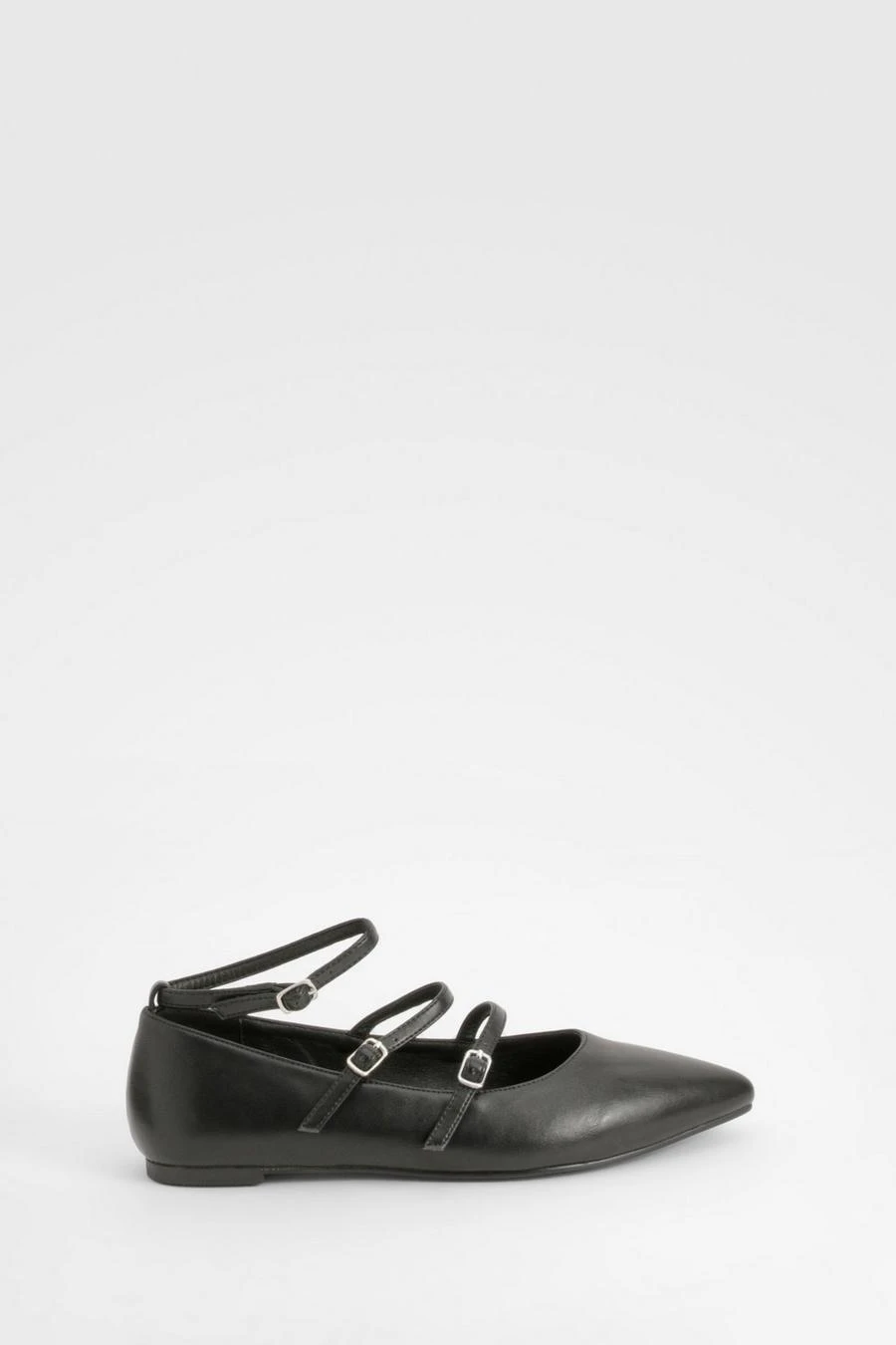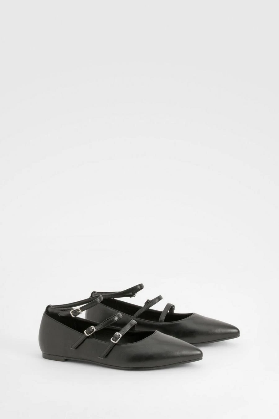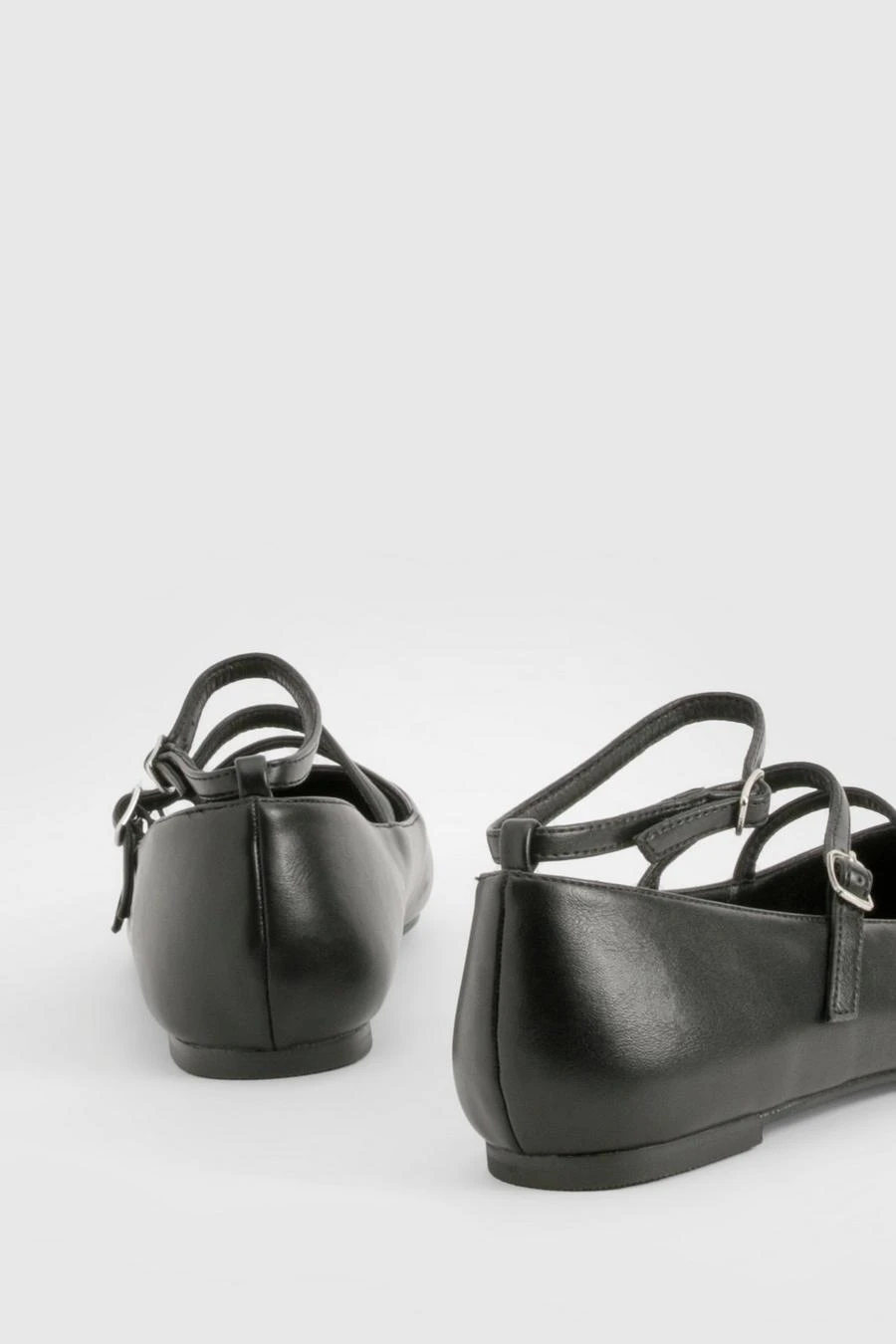 BOOHOO Wide Fit Triple Strap Ballet Flats