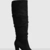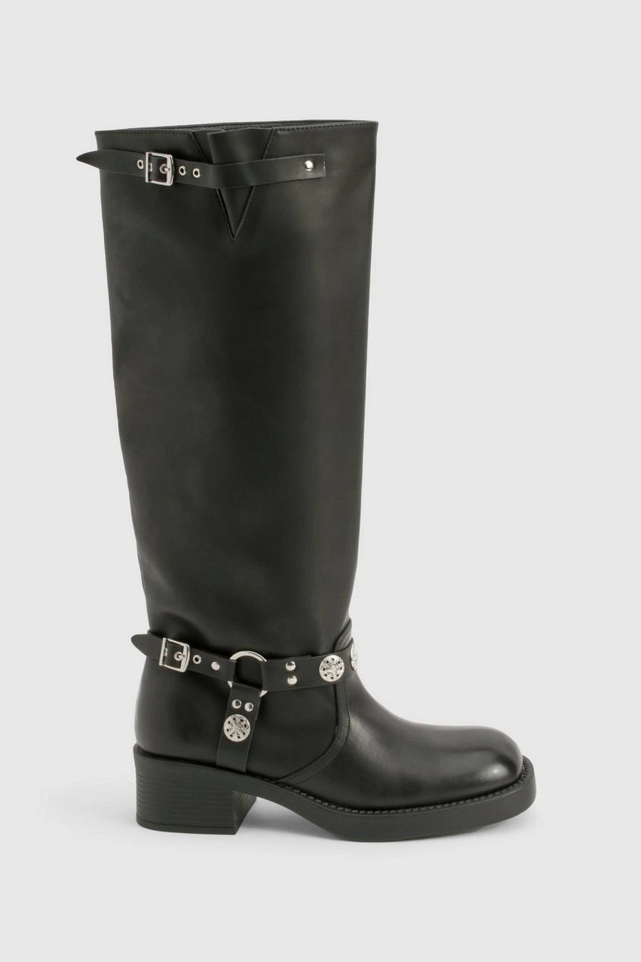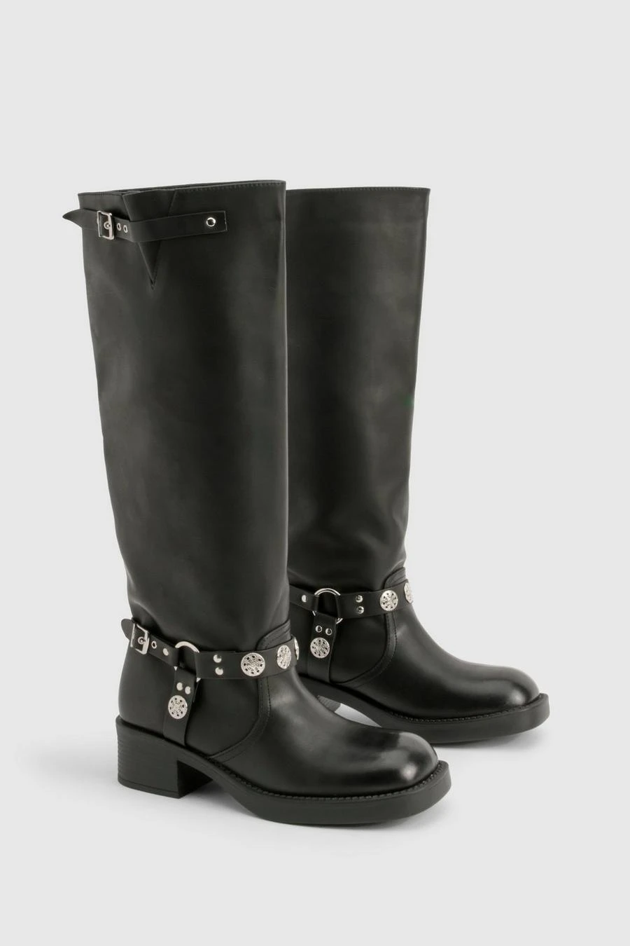 BOOHOO Wide Fit Western Style Buckle Detail Knee High Boots
