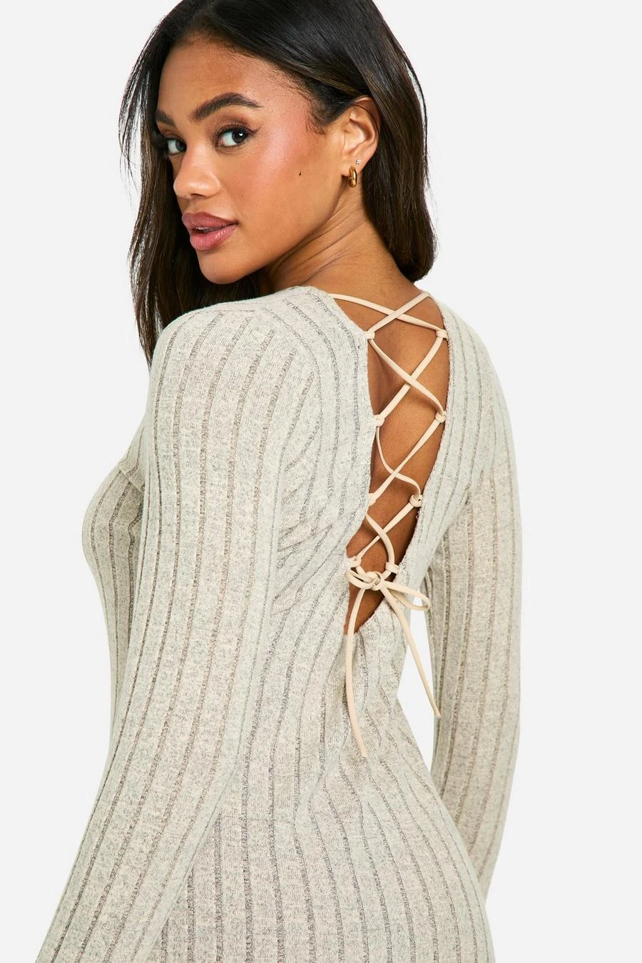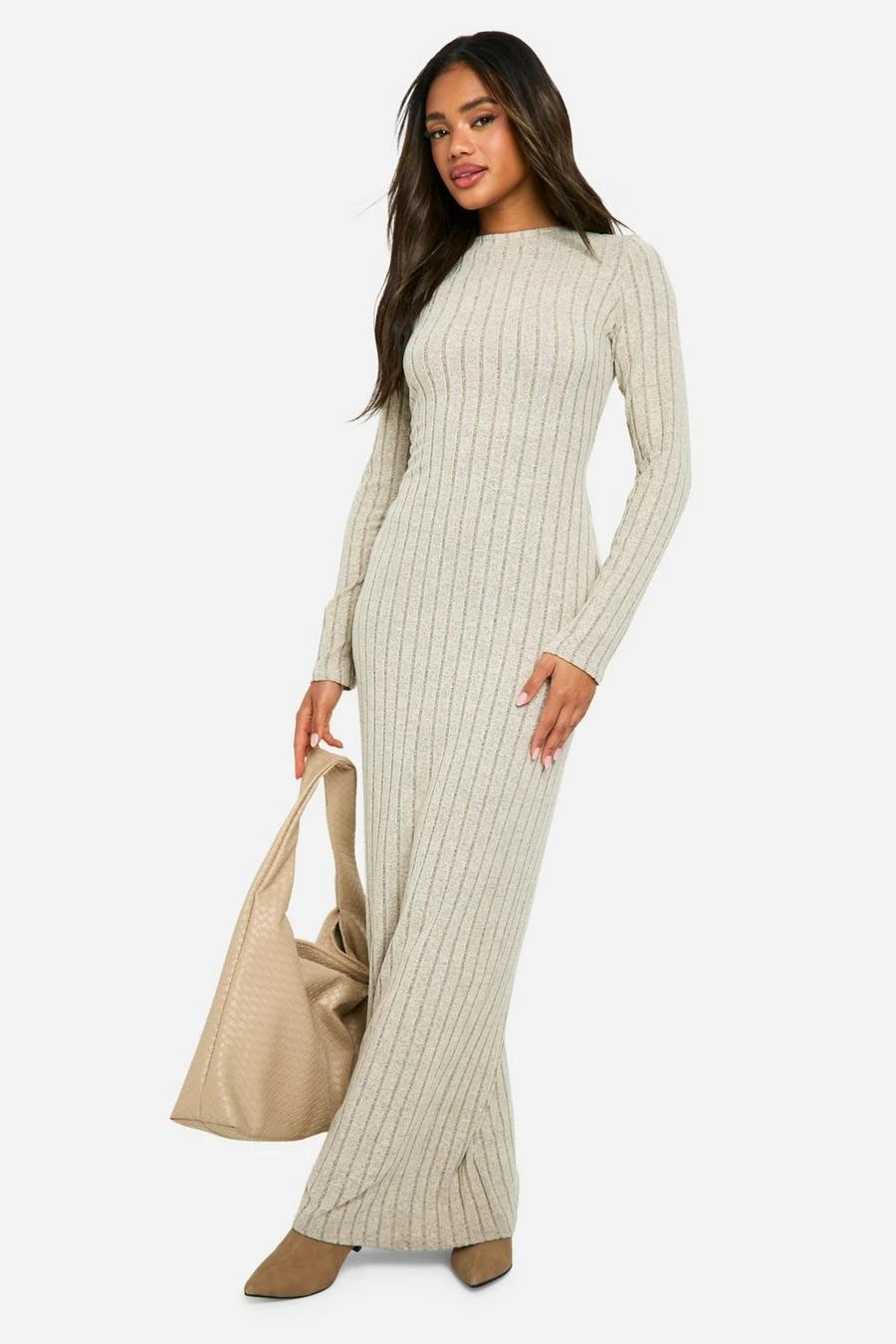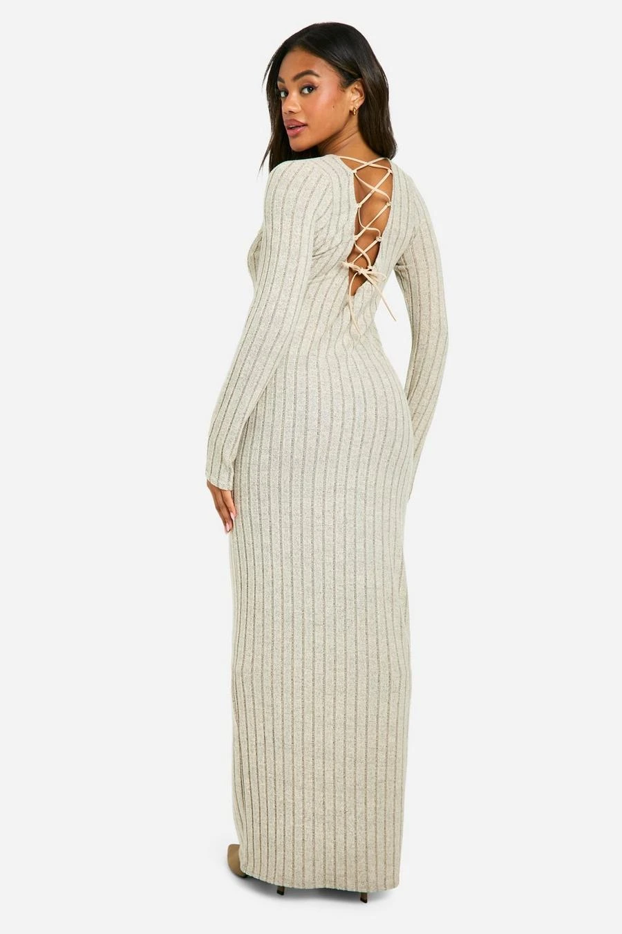 BOOHOO Wide Rib Tie Back Long Sleeve Maxi Dress