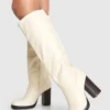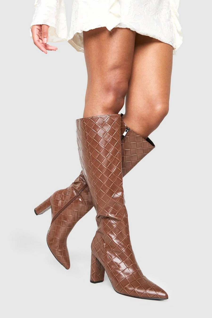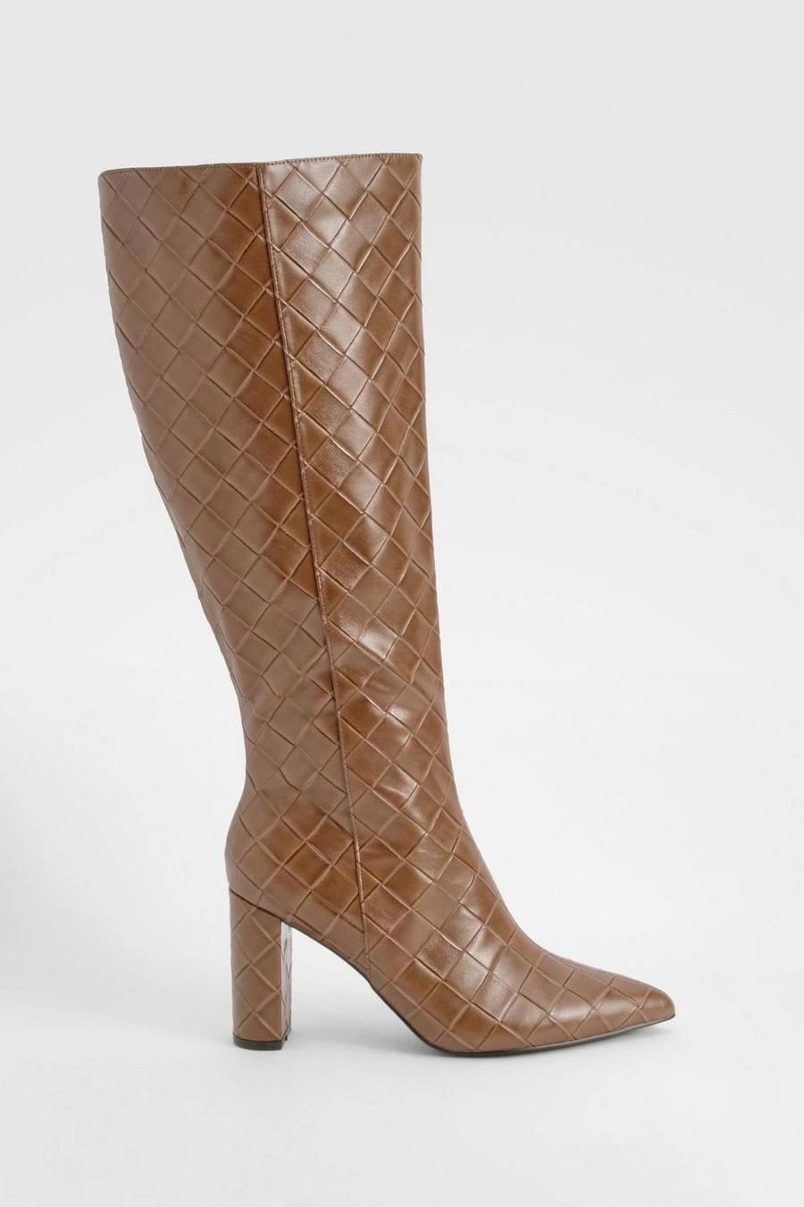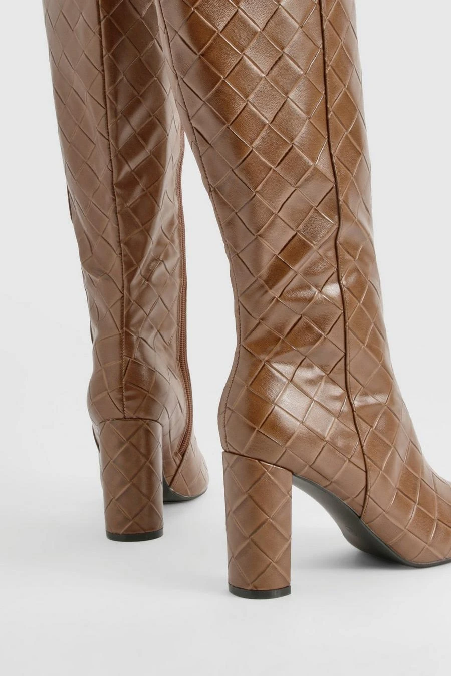 BOOHOO Woven Detail Block Heeled Knee High Boots