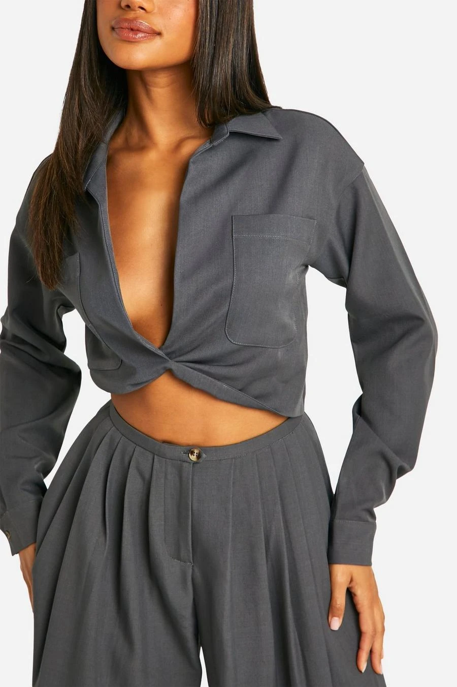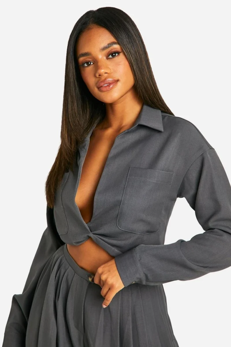 BOOHOO Woven Relaxed Fit Twist Front Shirt