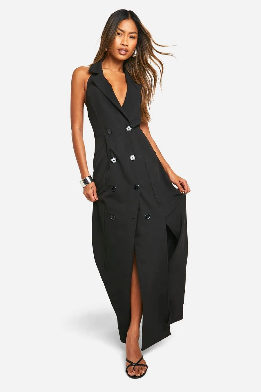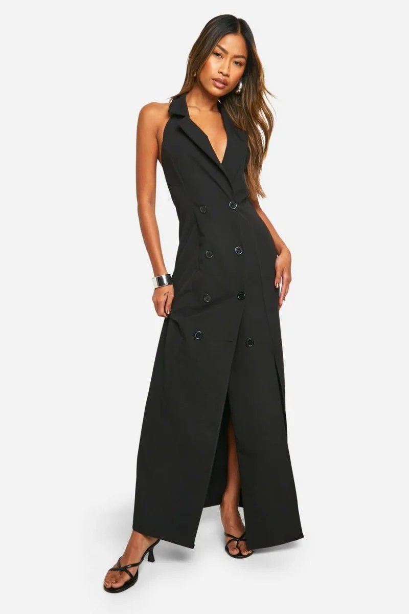 BOOHOO Woven Sleeveless Maxi Blazer Dress