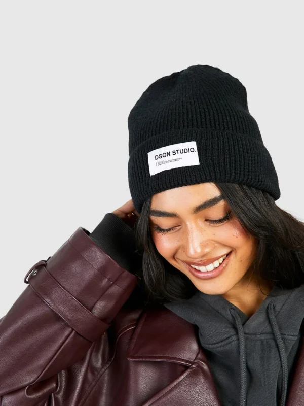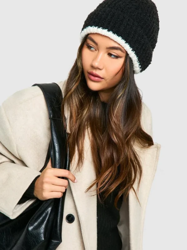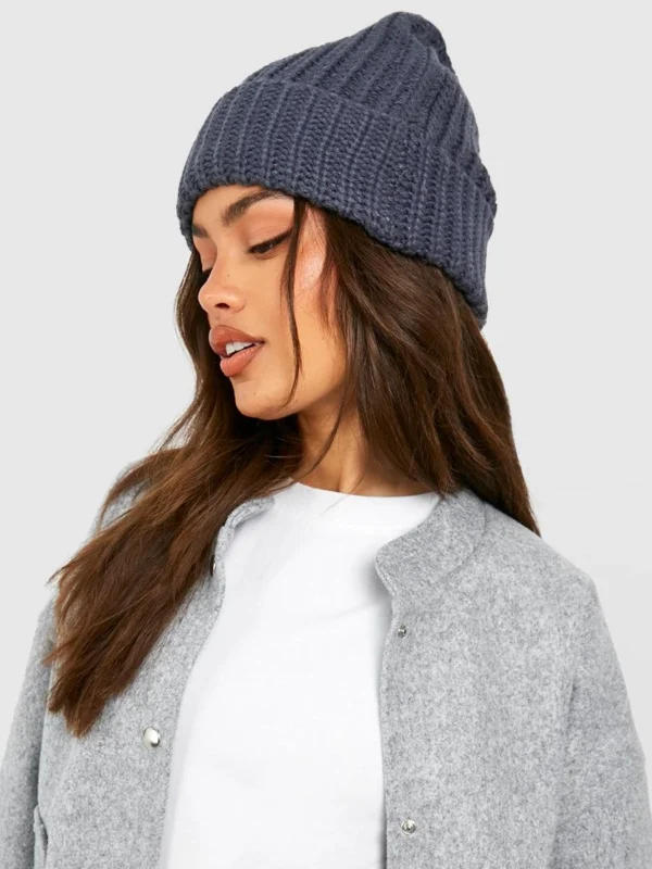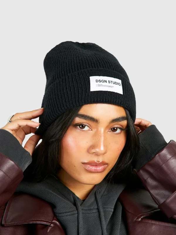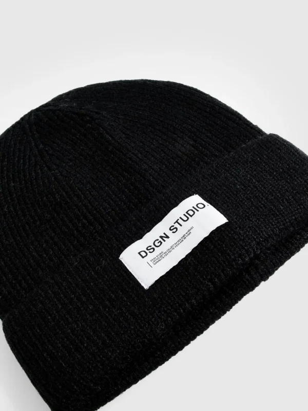 BOOHOO Chunky Ribbed Tab Detail Beanie
