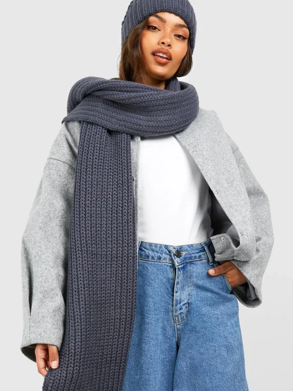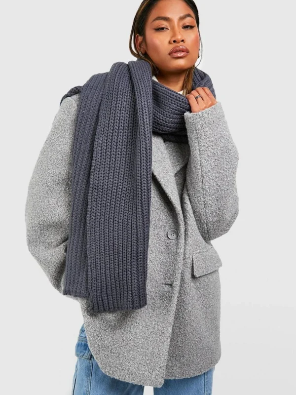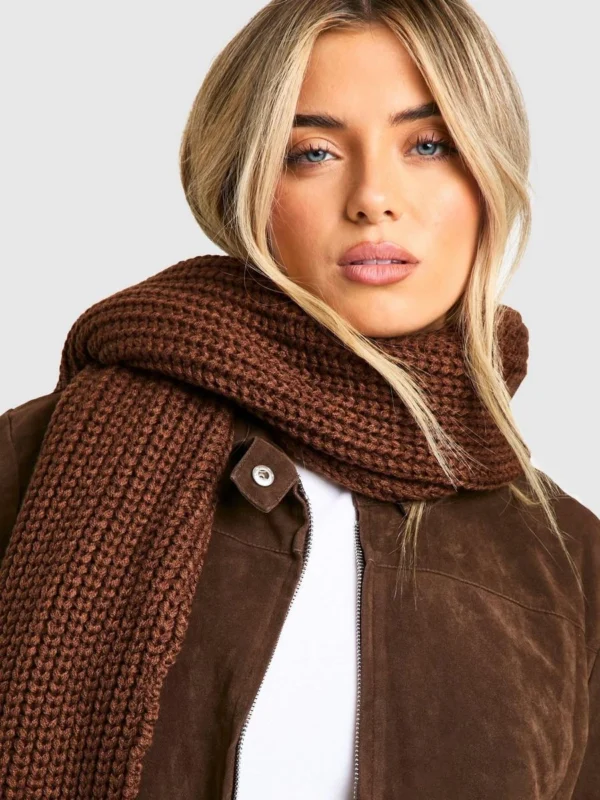 BOOHOO Chunky Ribbed Knit Long Scarf