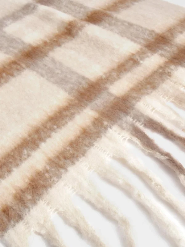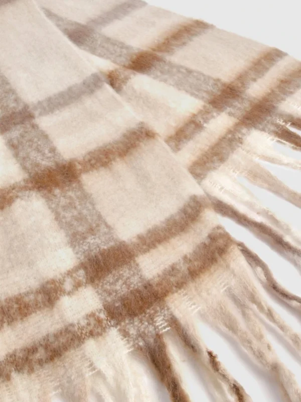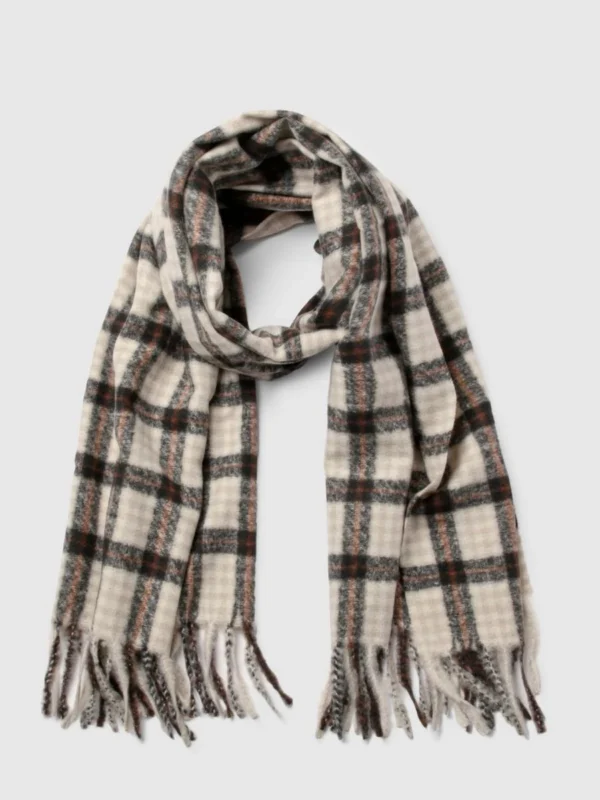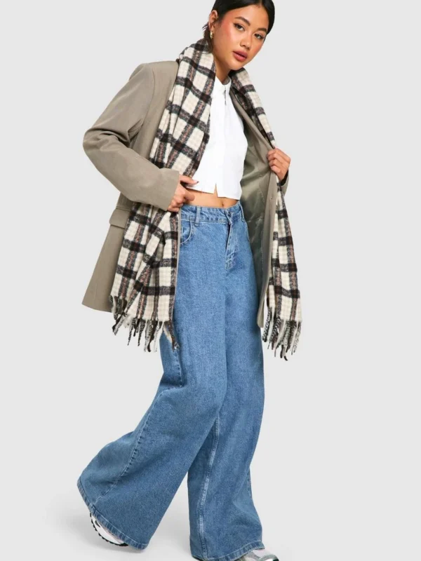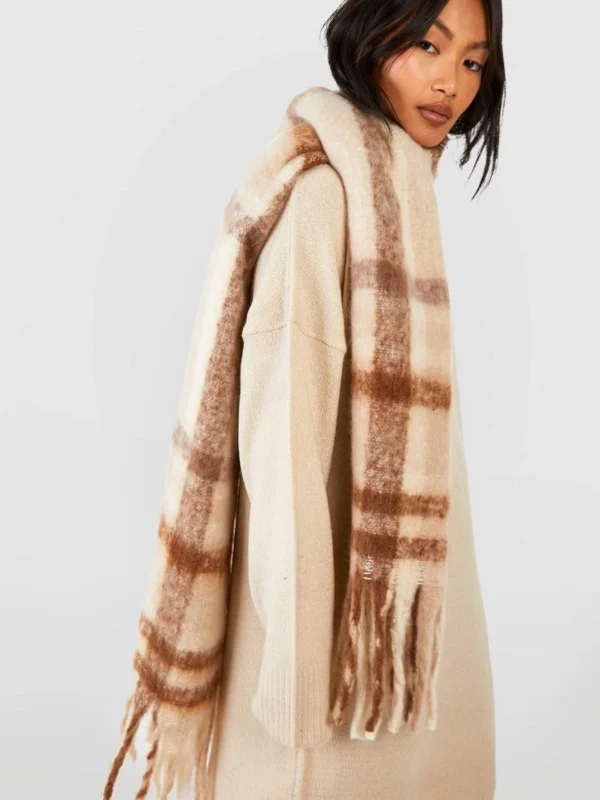 BOOHOO Tonal Checked Tassel Fringe Scarf