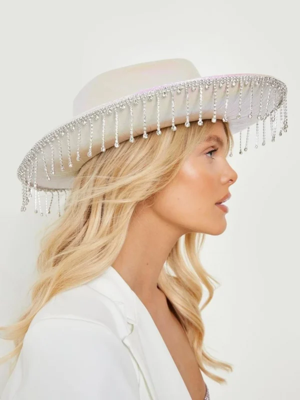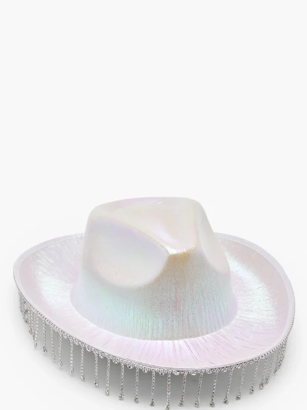 BOOHOO White Diamante Tassel Trim Cowboy Hat