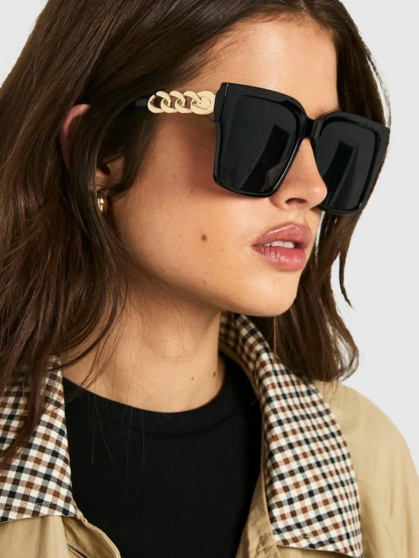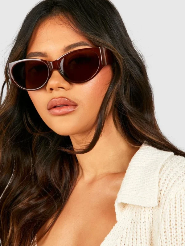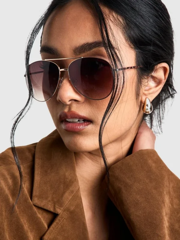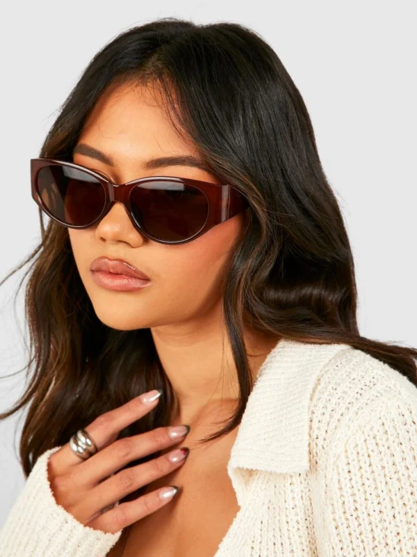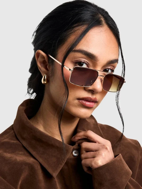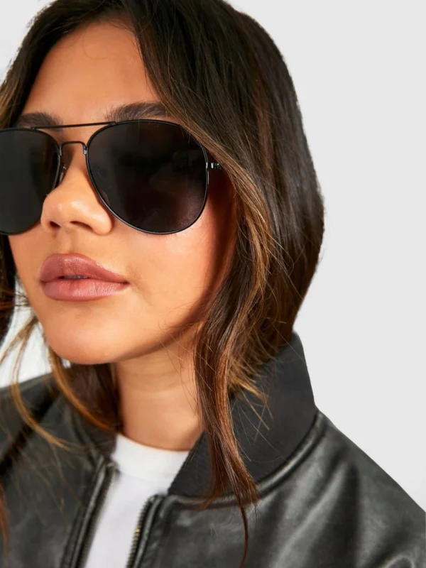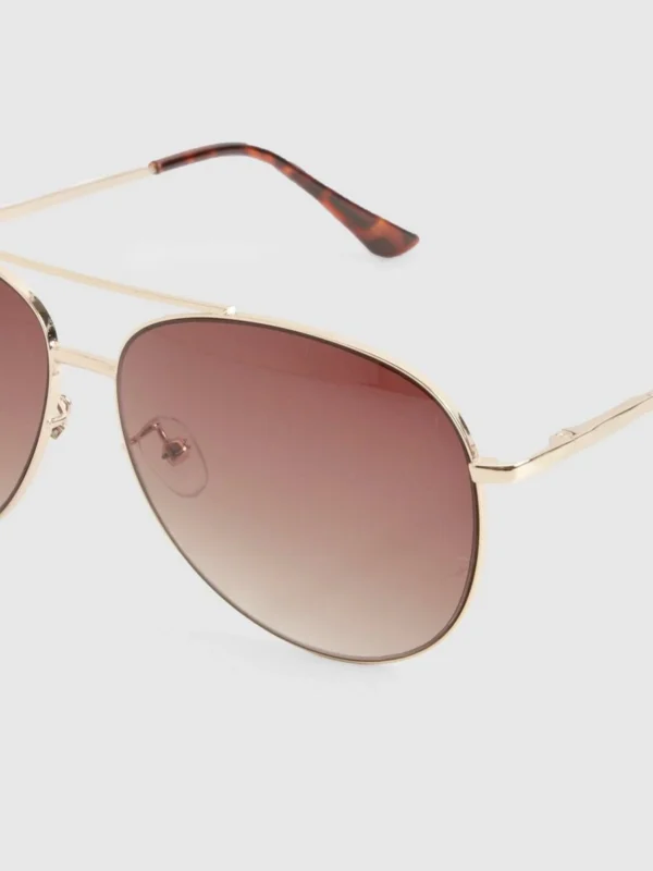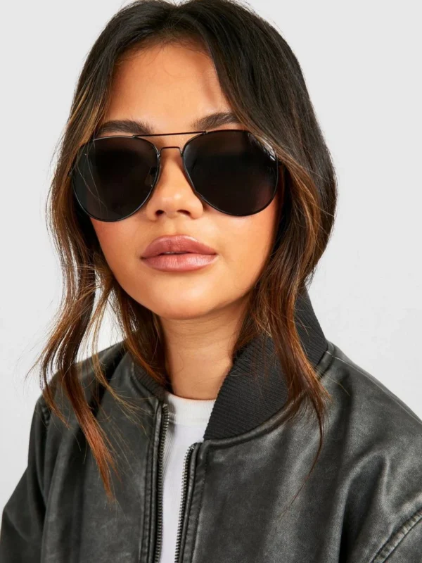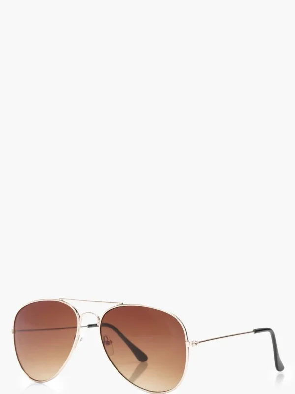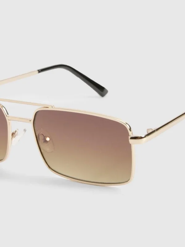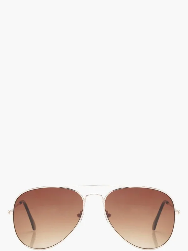 BOOHOO Brown Lenses Square Aviator Sunglasses