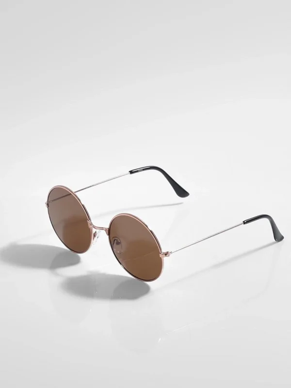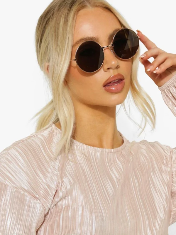 BOOHOO Gold Round Frame Brown Tinted Sunglasses