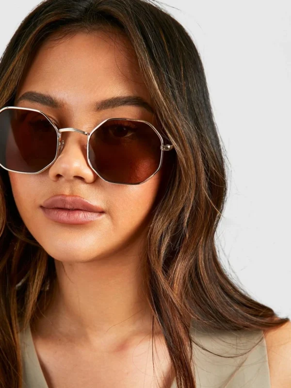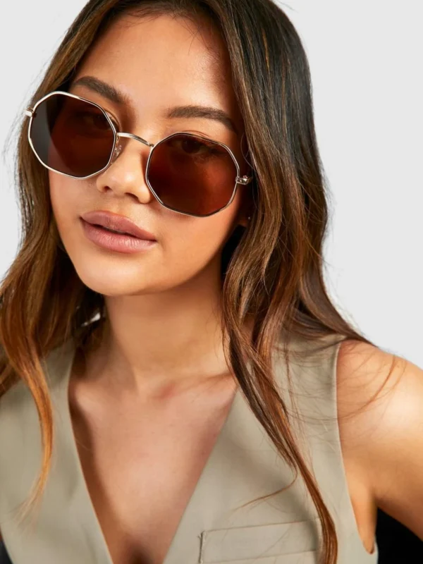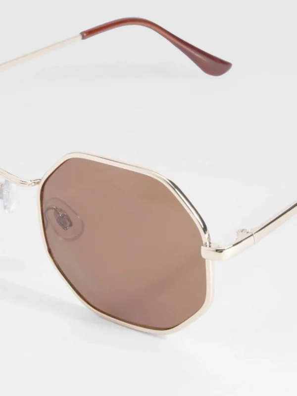 BOOHOO Gold Metal Hexagonal Sunglasses
