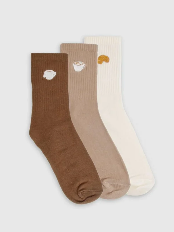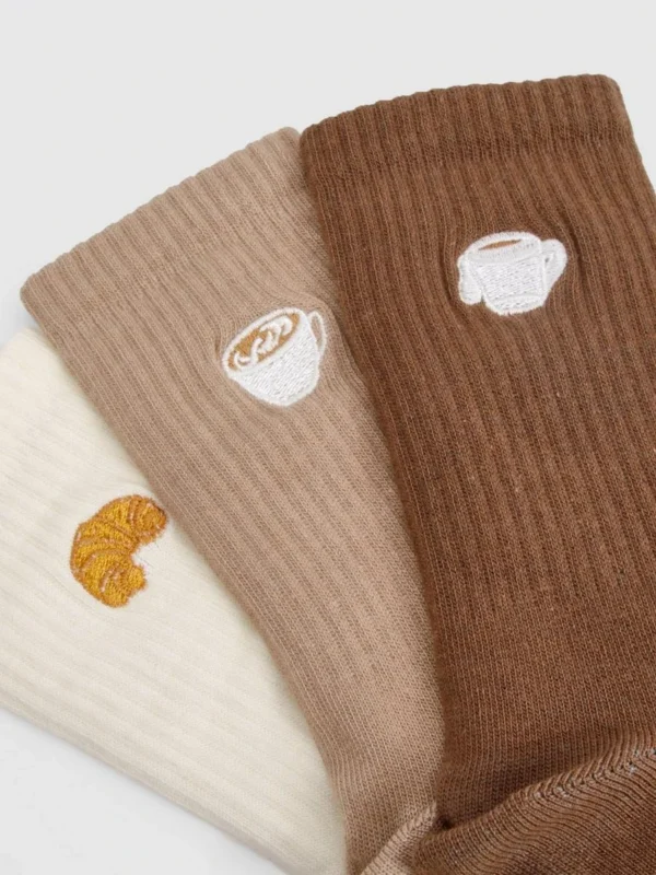 BOOHOO Coffee Embroidered Sock 3 Pack