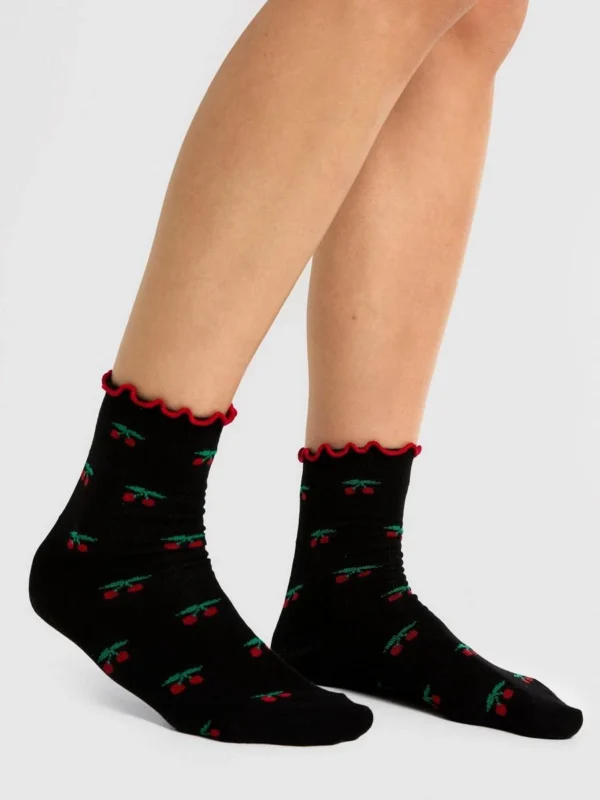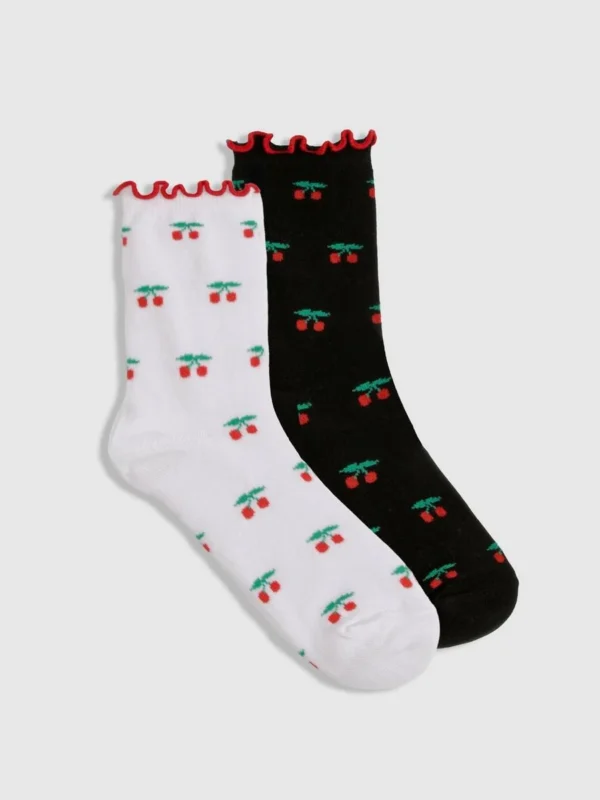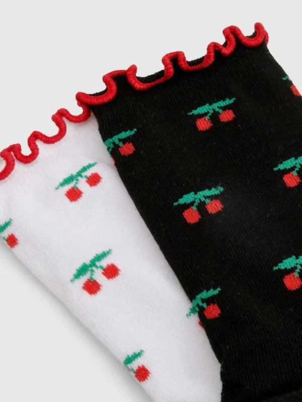BOOHOO Contrast Frill Cherry Pattern Sock 2 Pack