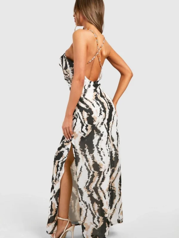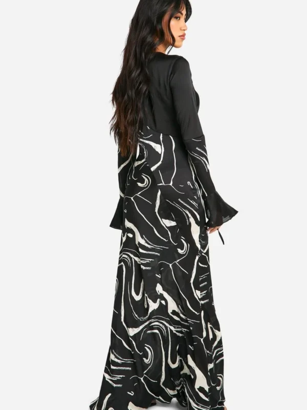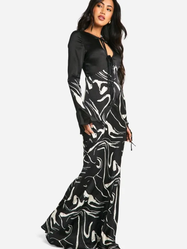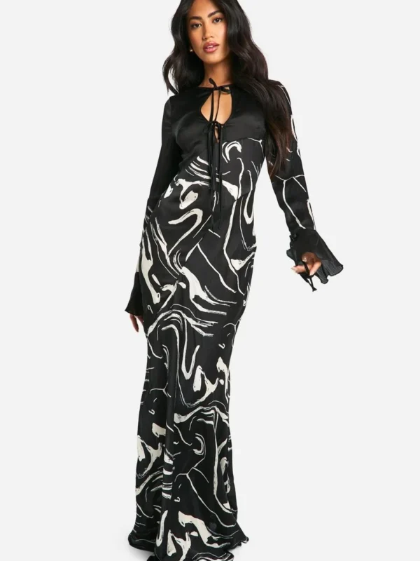 BOOHOO Abstract Chiffon Tie Maxi Dress