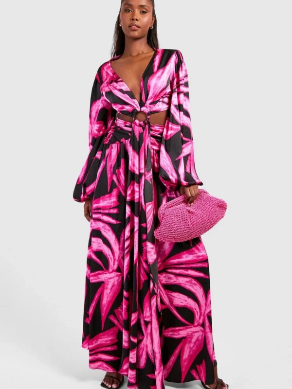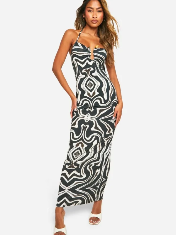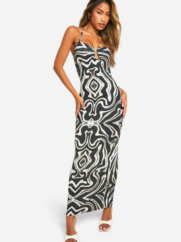 BOOHOO Abstract Print Cut Out Ring Detail Maxi Dress