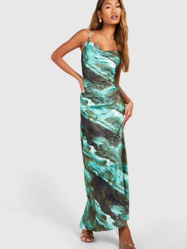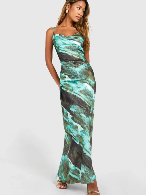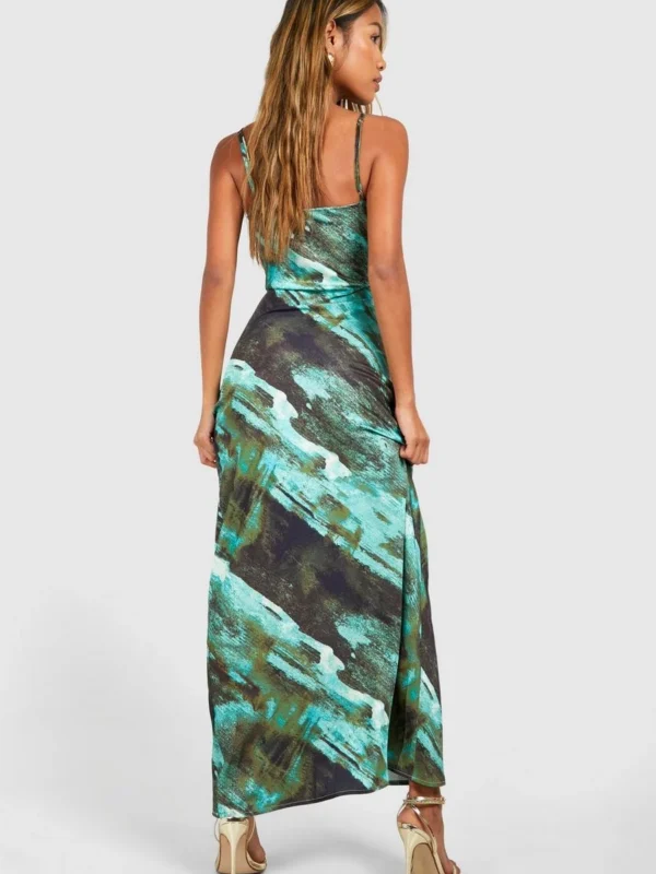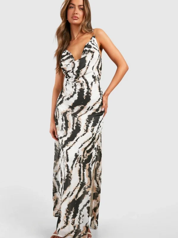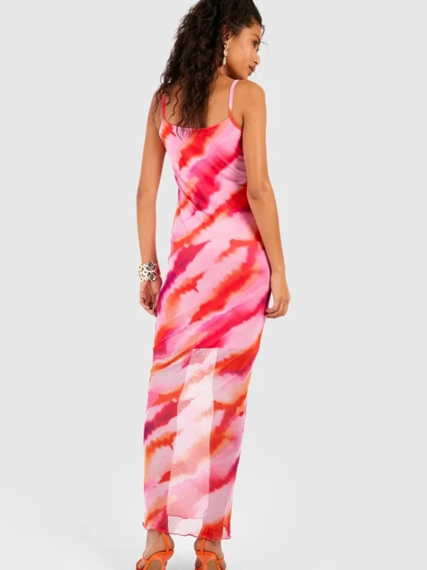 BOOHOO Abstract Print Mesh Maxi Slip Dress