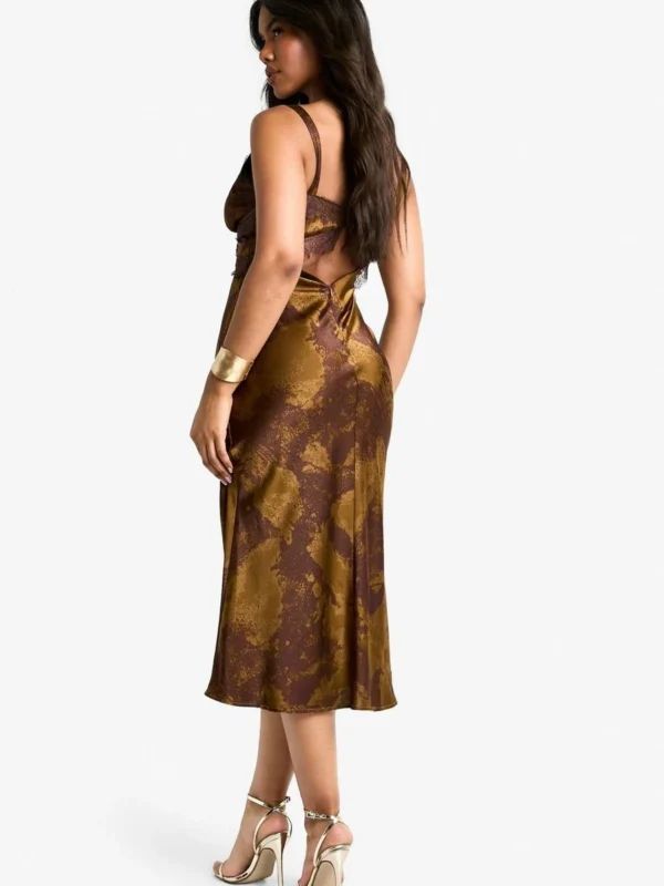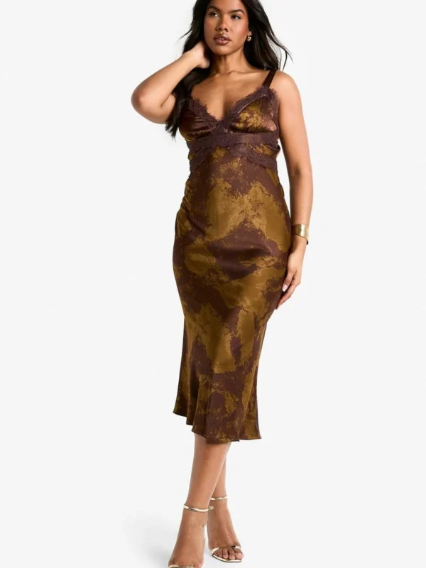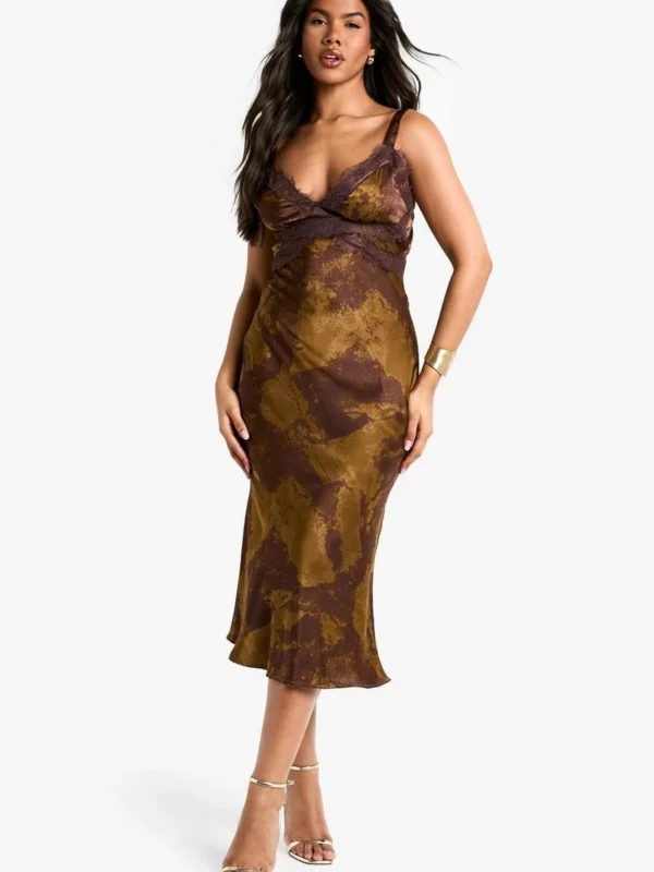 BOOHOO Blur Print Lace Trim Maxi Dress