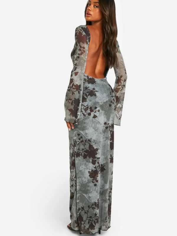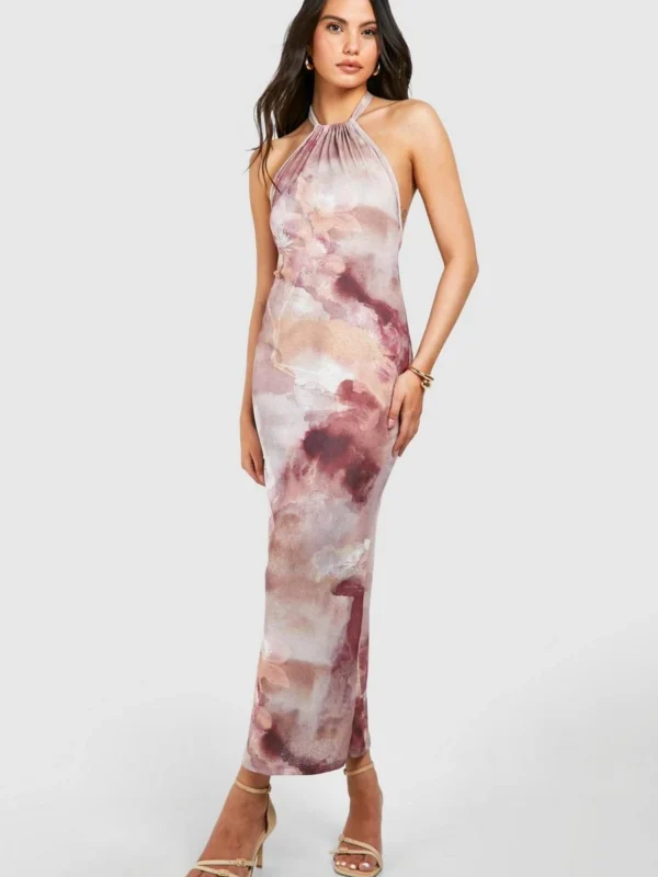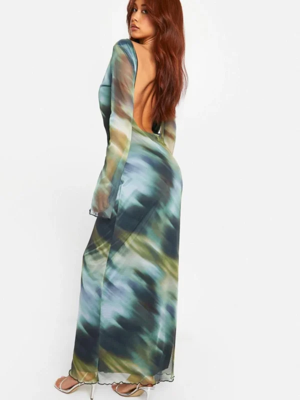 BOOHOO Blur Print Scoop Back Maxi Dress