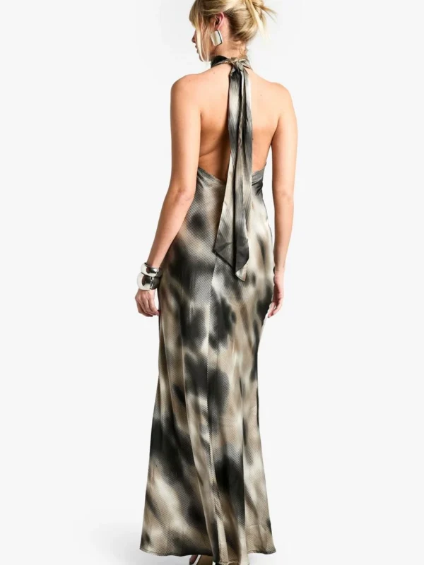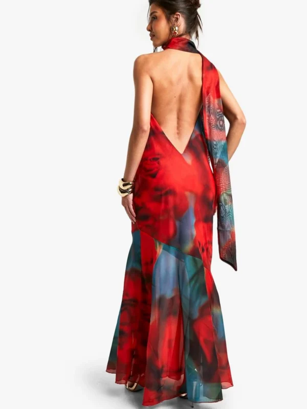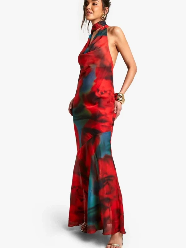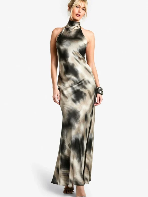 BOOHOO Blur Chiffon Halterneck Maxi Dress