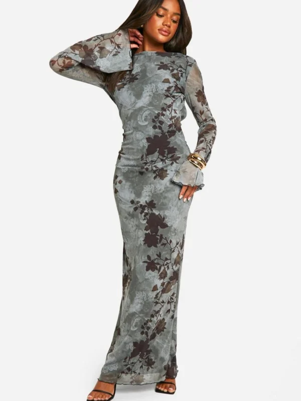 BOOHOO Blur Floral Scoop Back Maxi Dress