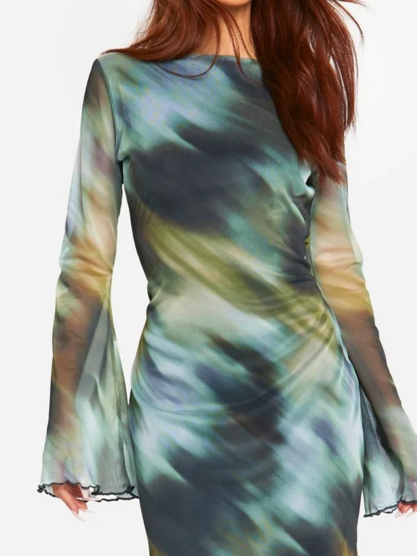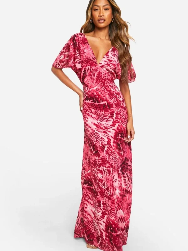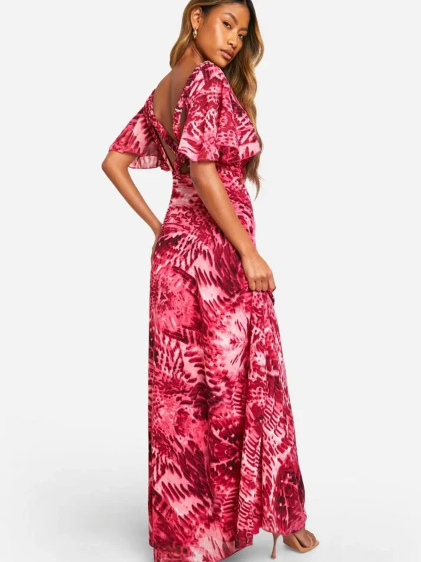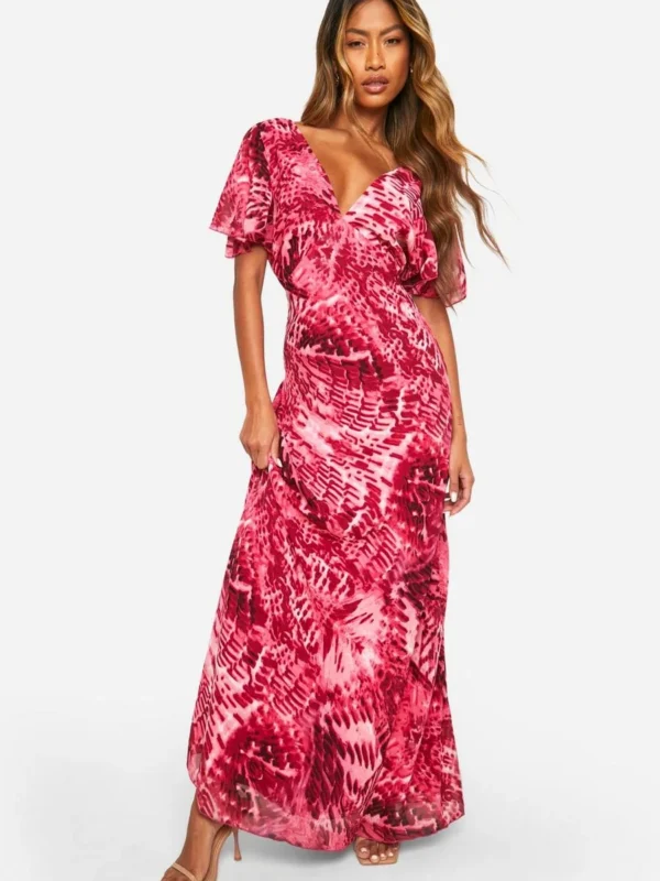 BOOHOO Blur Print Angel Sleeve Maxi Dress