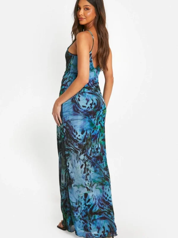 BOOHOO Blur Print Mesh Cami Maxi Dress