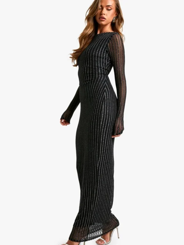 BOOHOO Boat Neck Metallic Rib Maxi Dress
