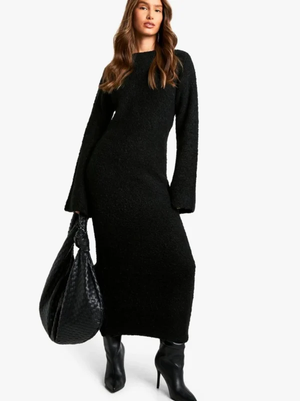 BOOHOO Borg Flare Sleeve Knitted Maxi Dress