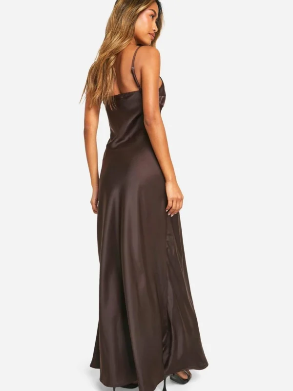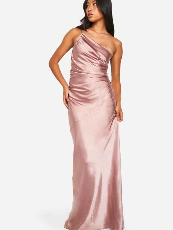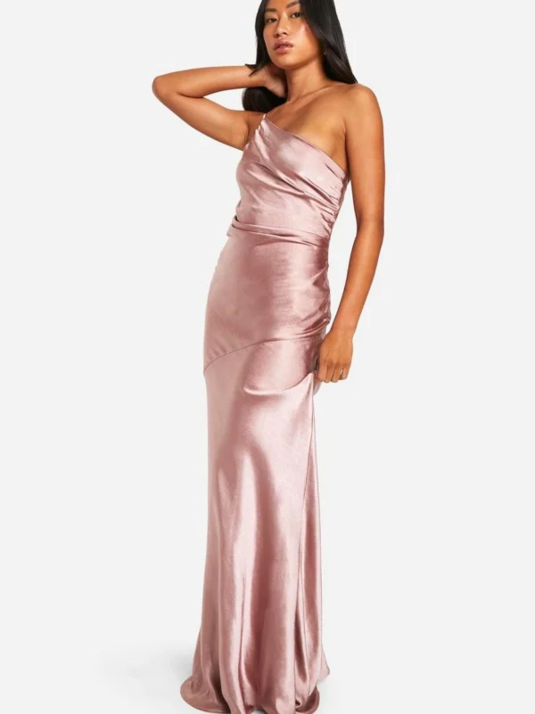 BOOHOO Bridesmaid Satin Asymmetric Maxi Dress