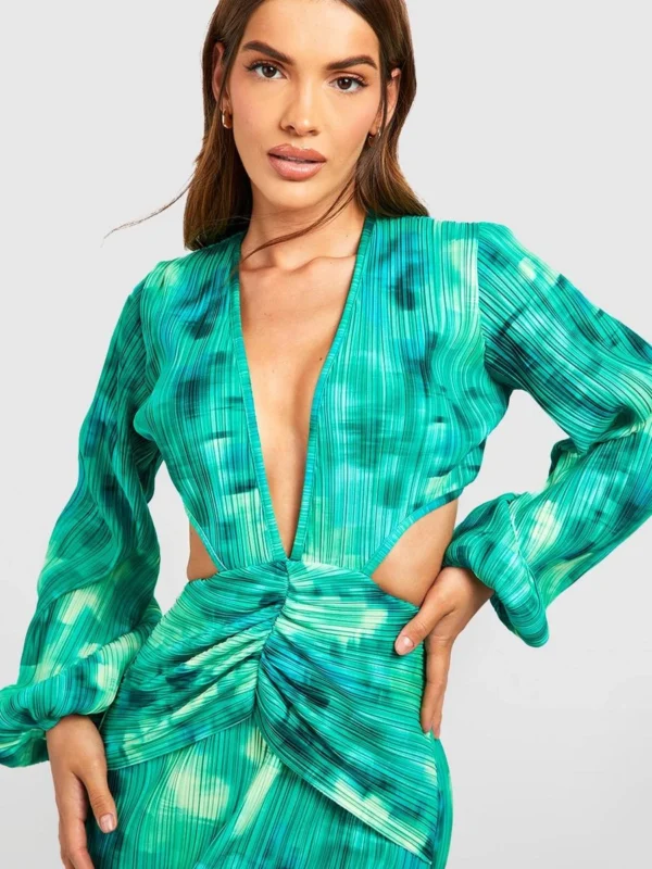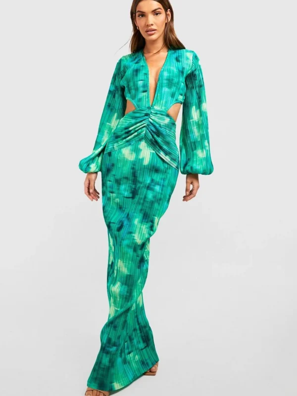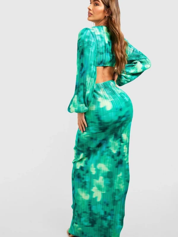 BOOHOO Blurred Floral Plisse Cut Out Maxi Dress