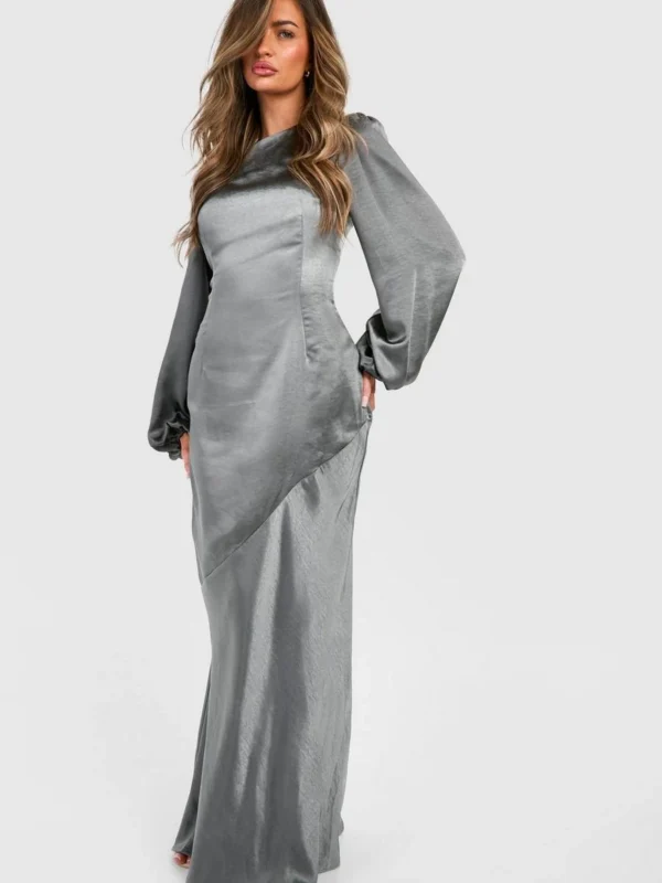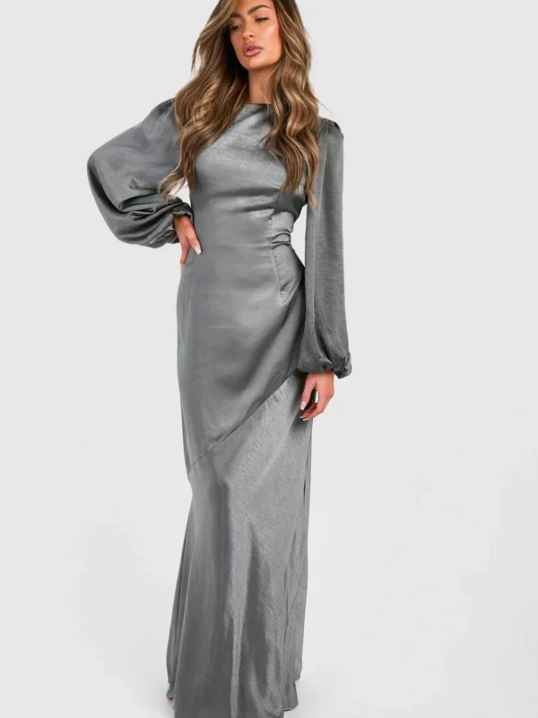 BOOHOO Bridesmaid Satin Blouson Sleeve Maxi Dress