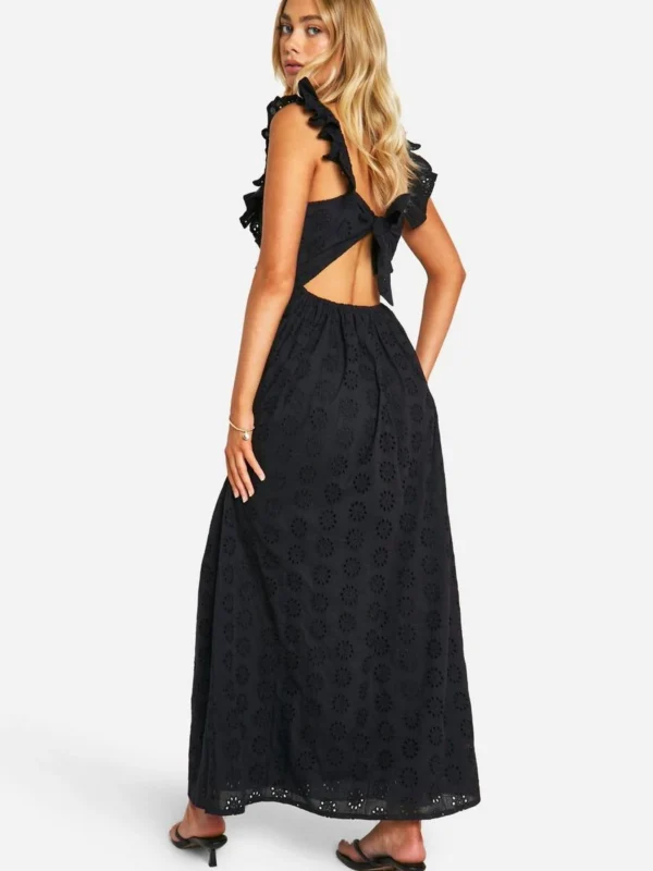 BOOHOO Broderie Puff Sleeve Tie Front Maxi Dress