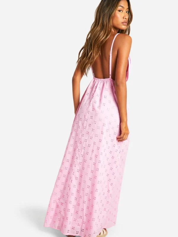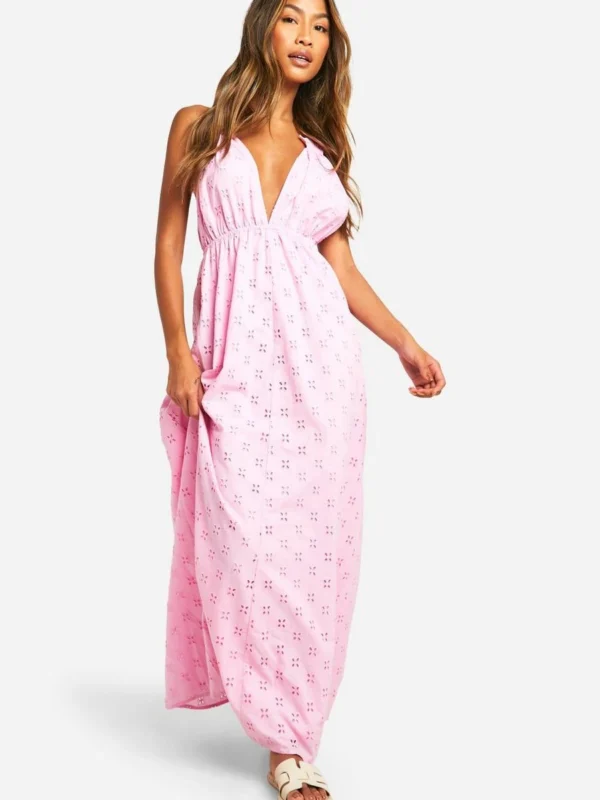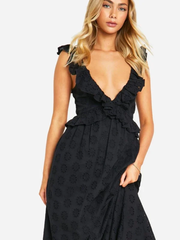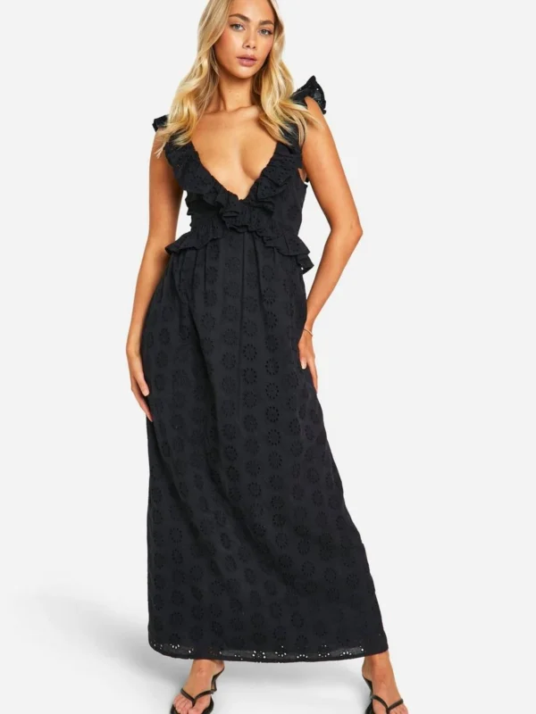 BOOHOO Broderie Ruffle Plunge Maxi Dress