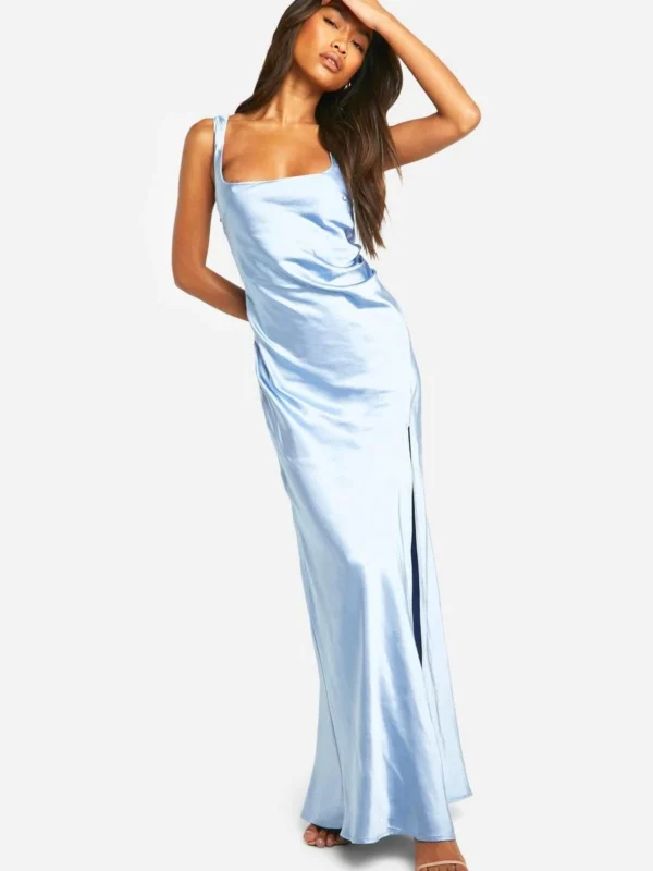 BOOHOO Bridesmaid Satin Square Neck Maxi Dress