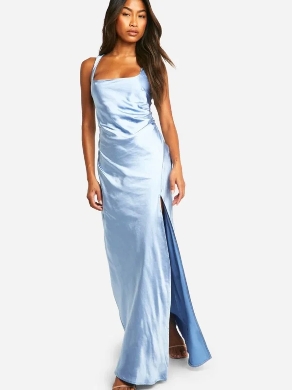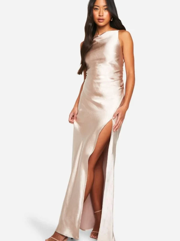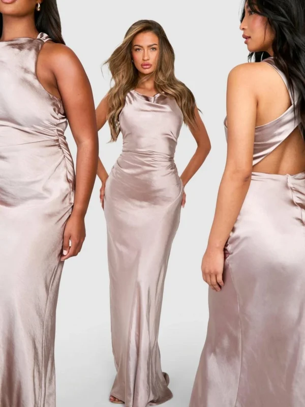 BOOHOO Bridesmaid Satin Cut Out Maxi Dress
