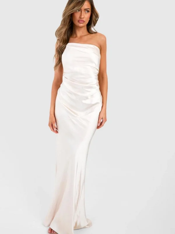 BOOHOO Bridesmaid Satin Slash Neck Maxi Dress