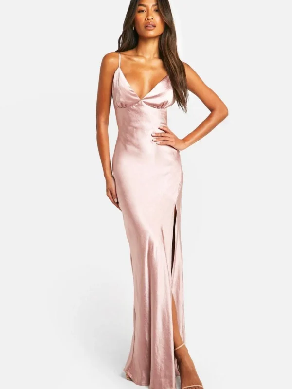 BOOHOO Bridesmaid Satin Strappy Maxi Dress