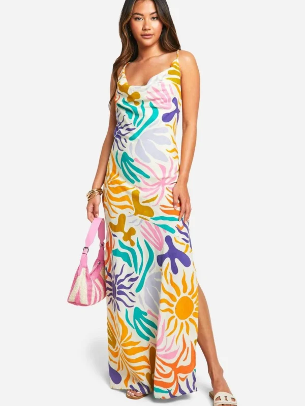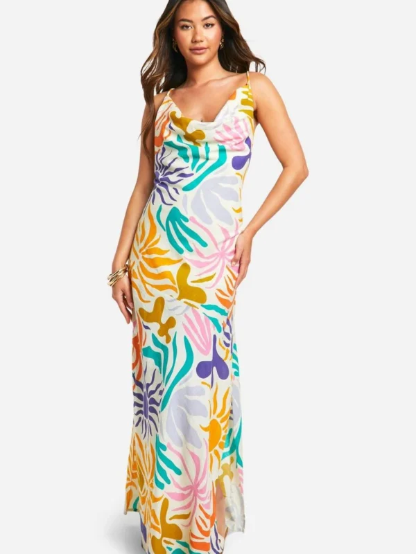 BOOHOO Bright Cotton Cowl Neck Maxi Dress