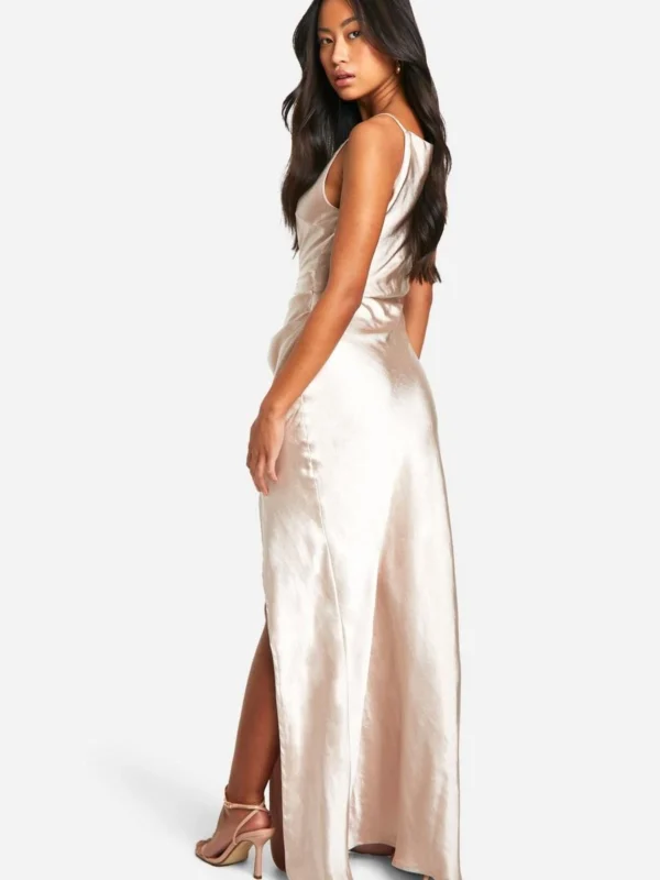 BOOHOO Bridesmaid Satin Strappy Asymmetric Maxi Dress