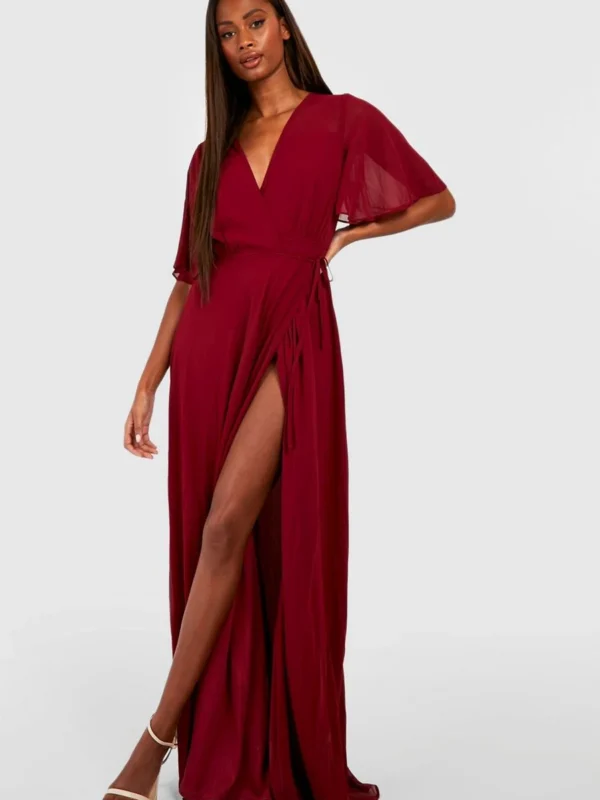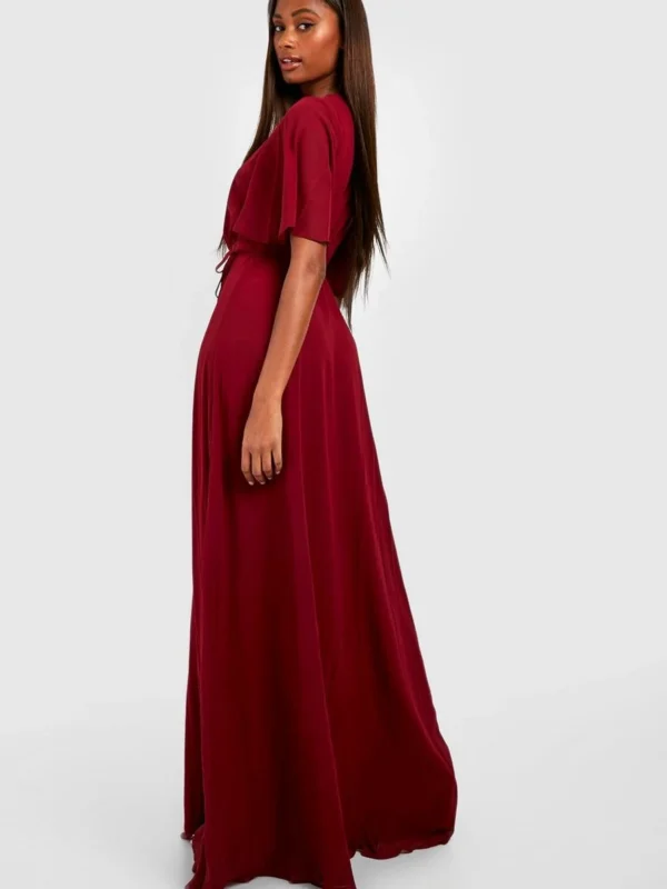 BOOHOO Chiffon Angel Sleeve Wrap Maxi Bridesmaid Dress