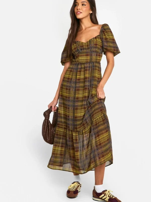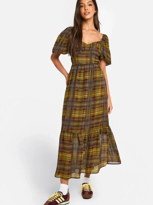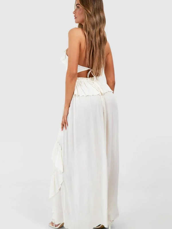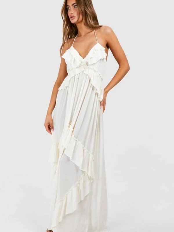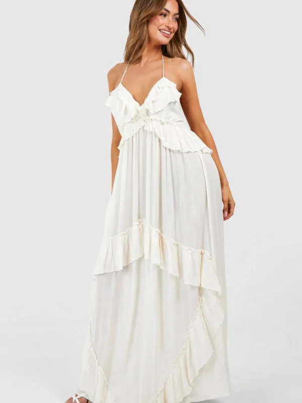 BOOHOO Cheesecloth Ruffle Smock Maxi Dress