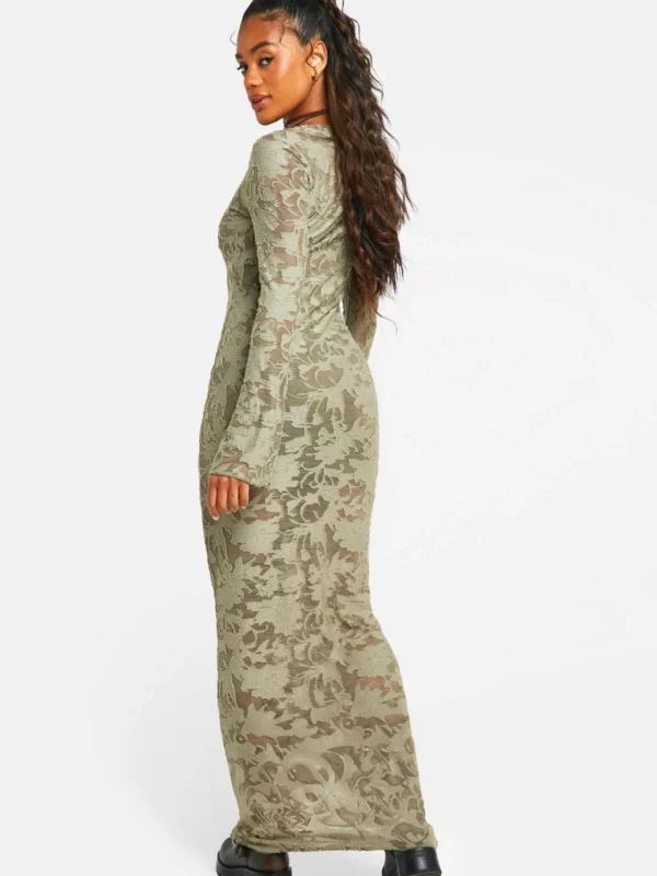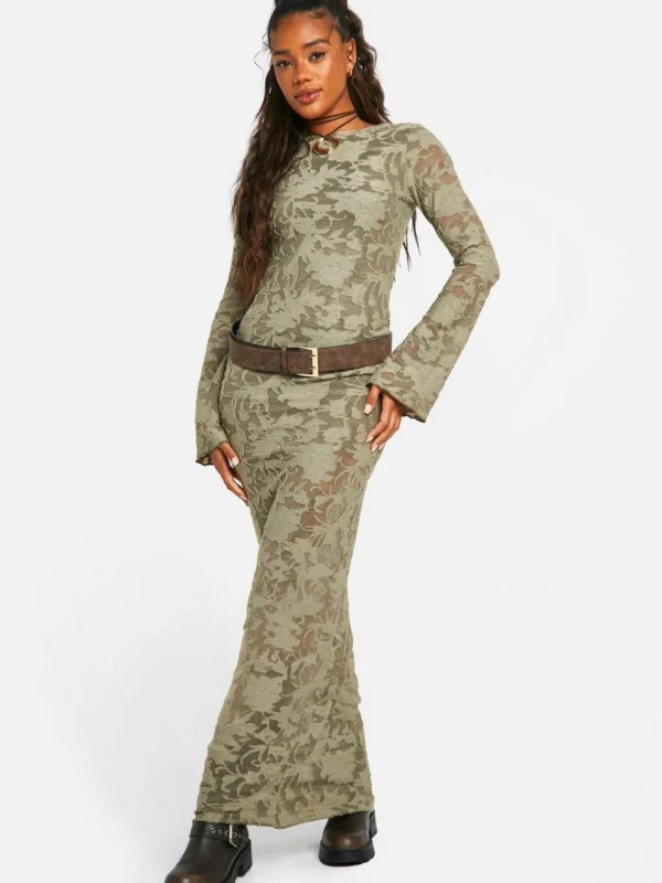 BOOHOO Burnout Mesh Flare Sleeve Maxi Dress